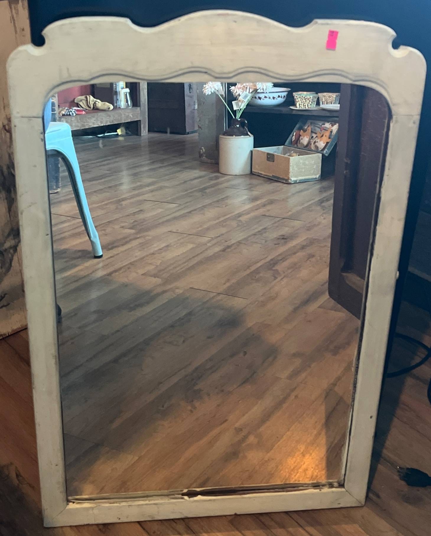 10 Rectangular Wall Mirror with Distressed White Frame, 20×30