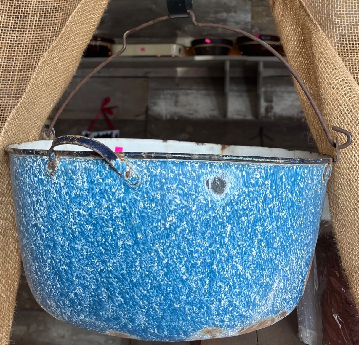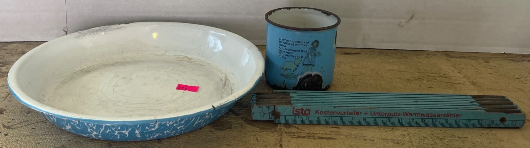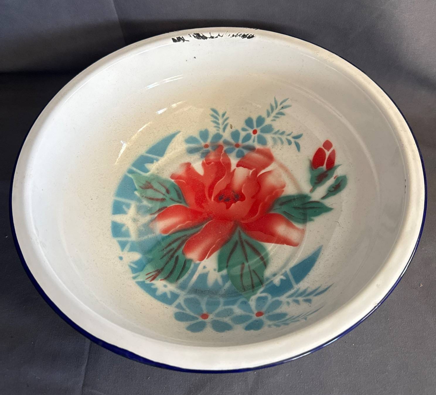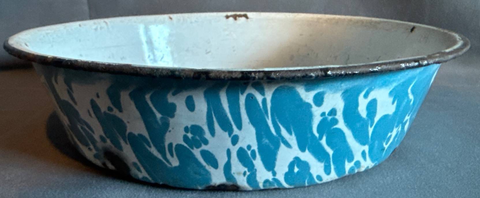 1000 Enamelware Basin with Blue and White Swirl Pattern, 12?