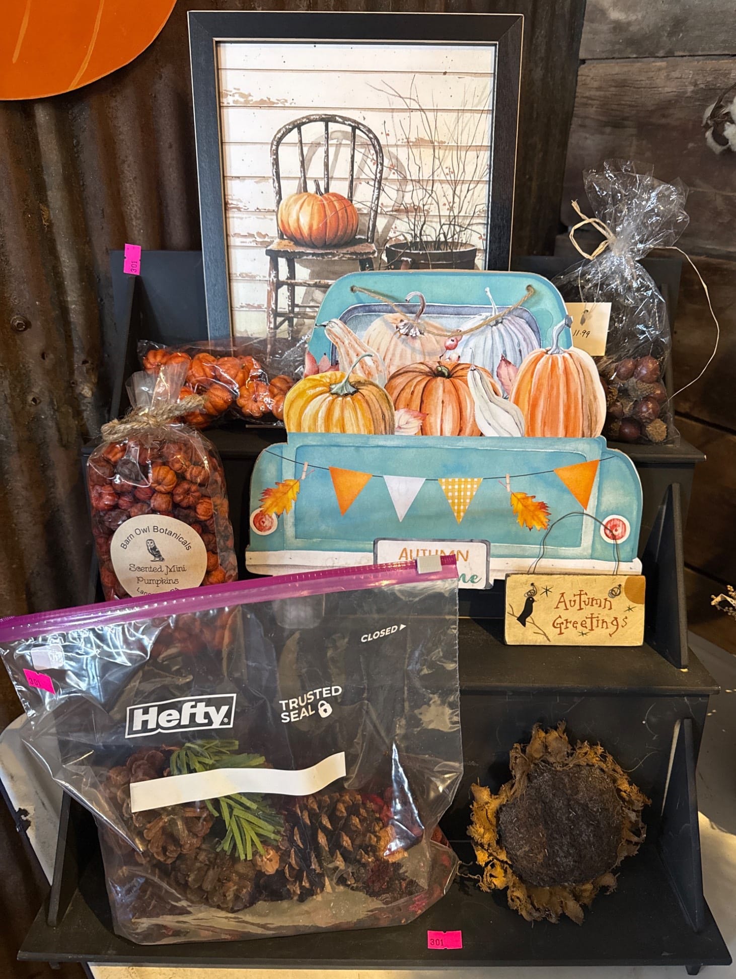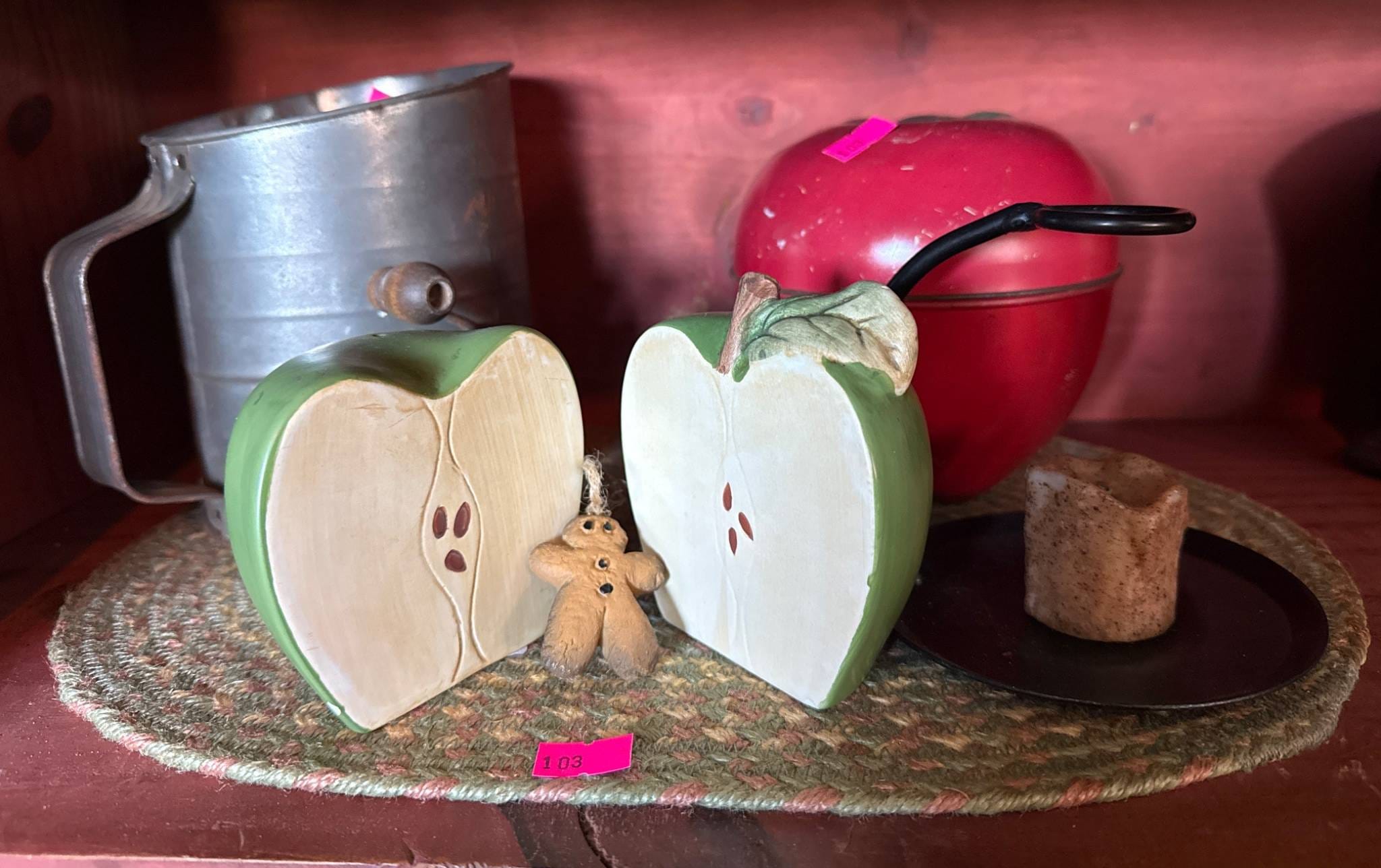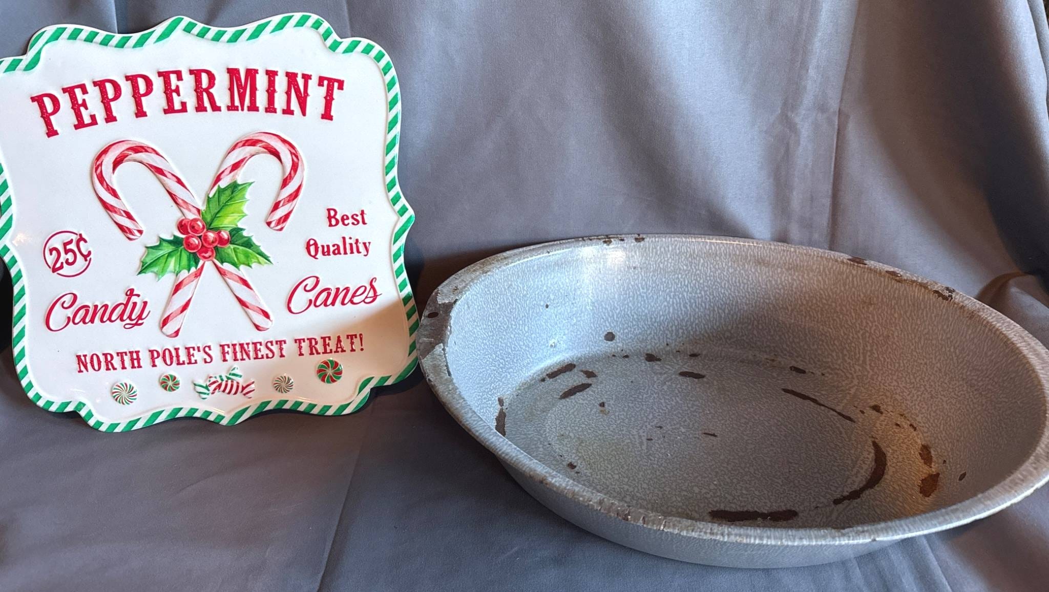 1005 Metallic Pie Pan and Embossed Peppermint Candy Sign, 17?