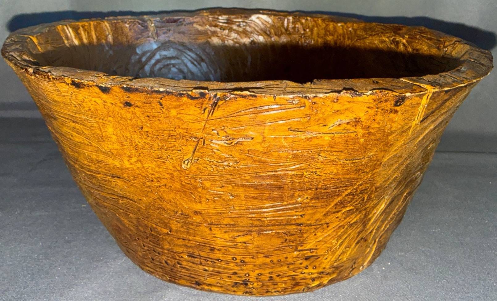 1006 Wood Hand-Carved Bowl with Textured Surface, 5?
