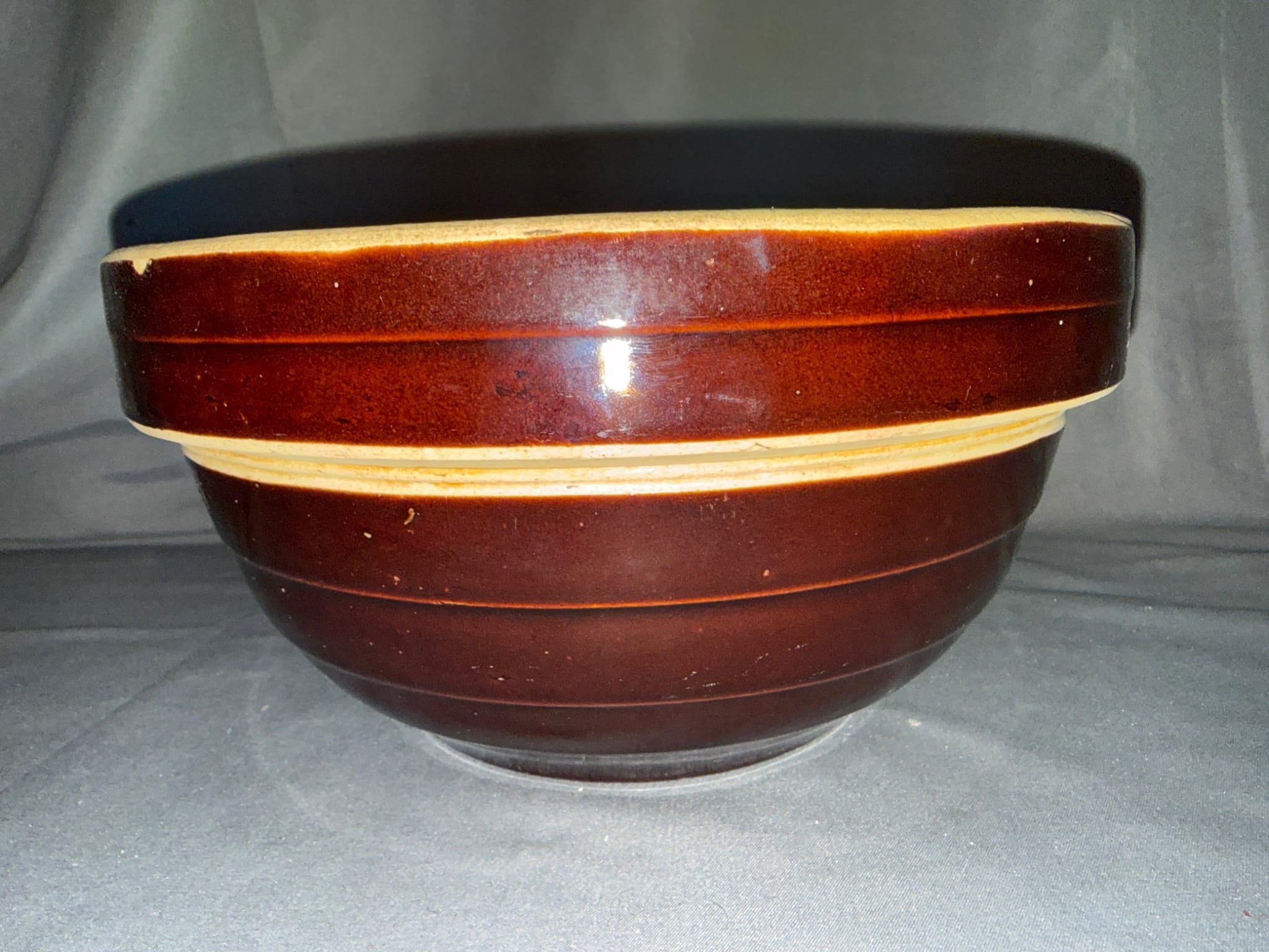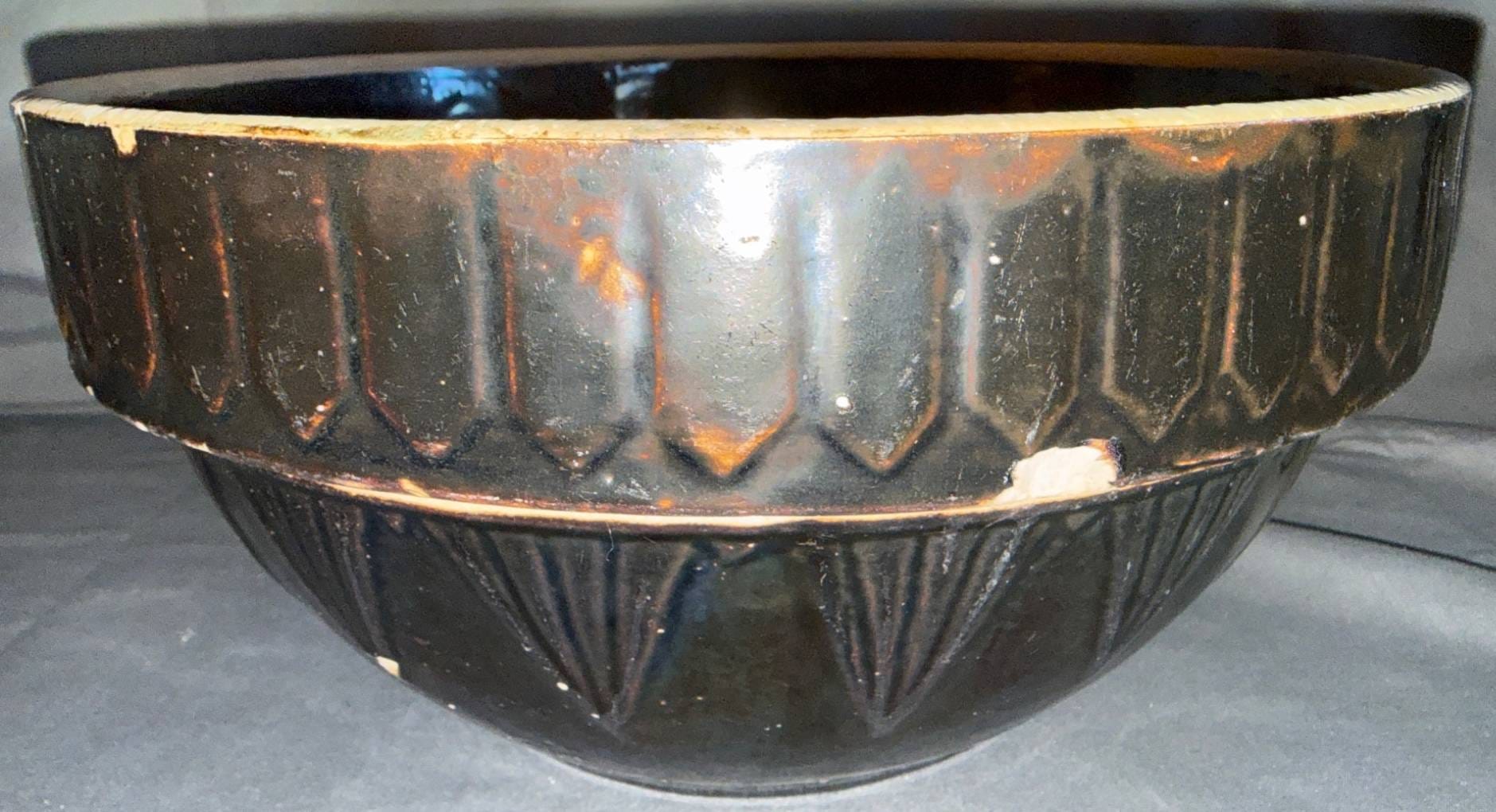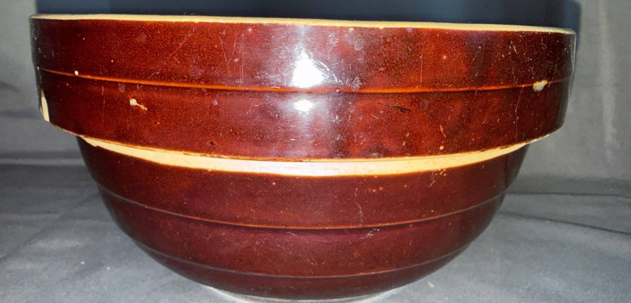1011 Brown Glazed Stoneware Mixing Bowl, Made in USA, 9?