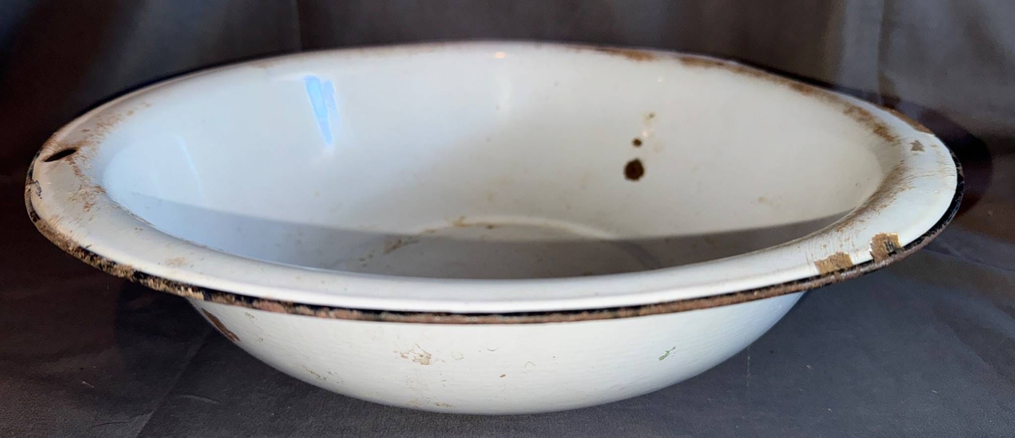 1013 White Enamel Basin with Black Rim, 12?