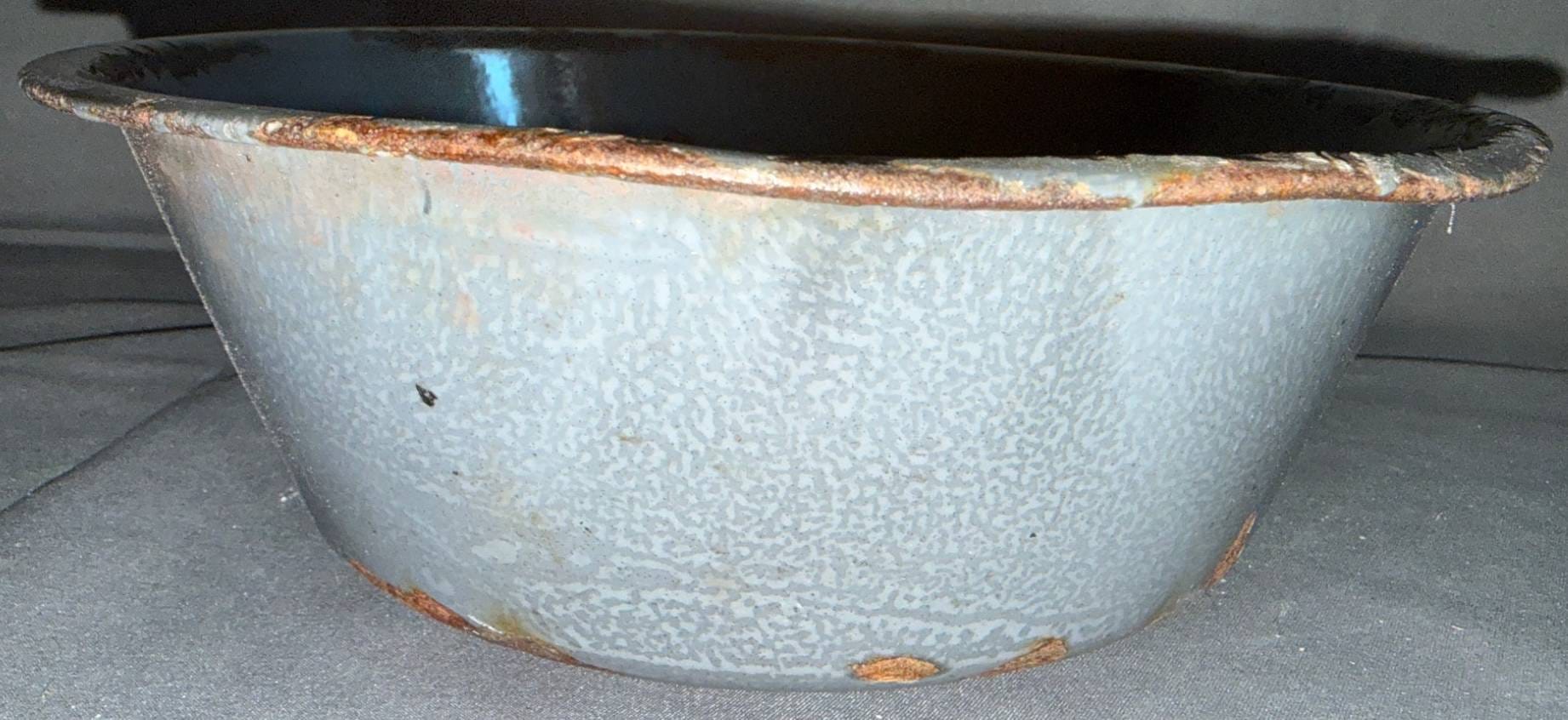 1014 Gray Enamel Metal Bowl, 11?
