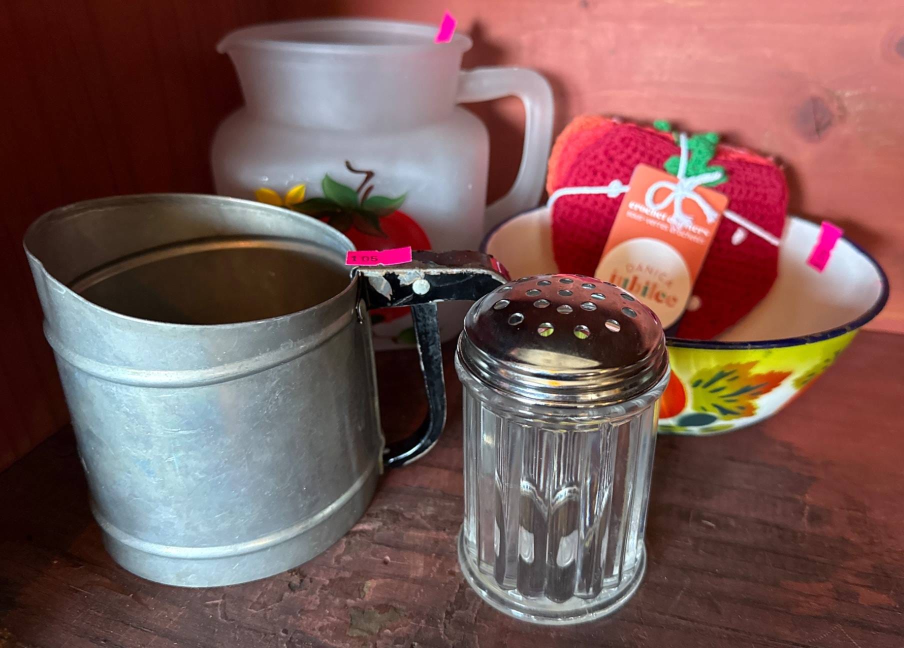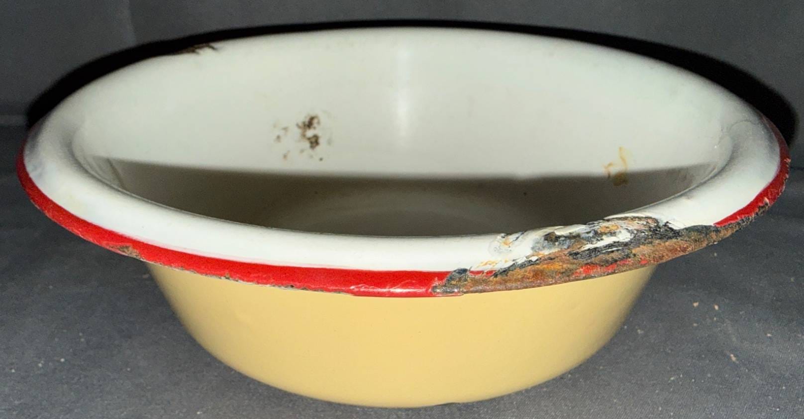 1019 Enamel-Coated Metal Basin with Red Rim, 8?
