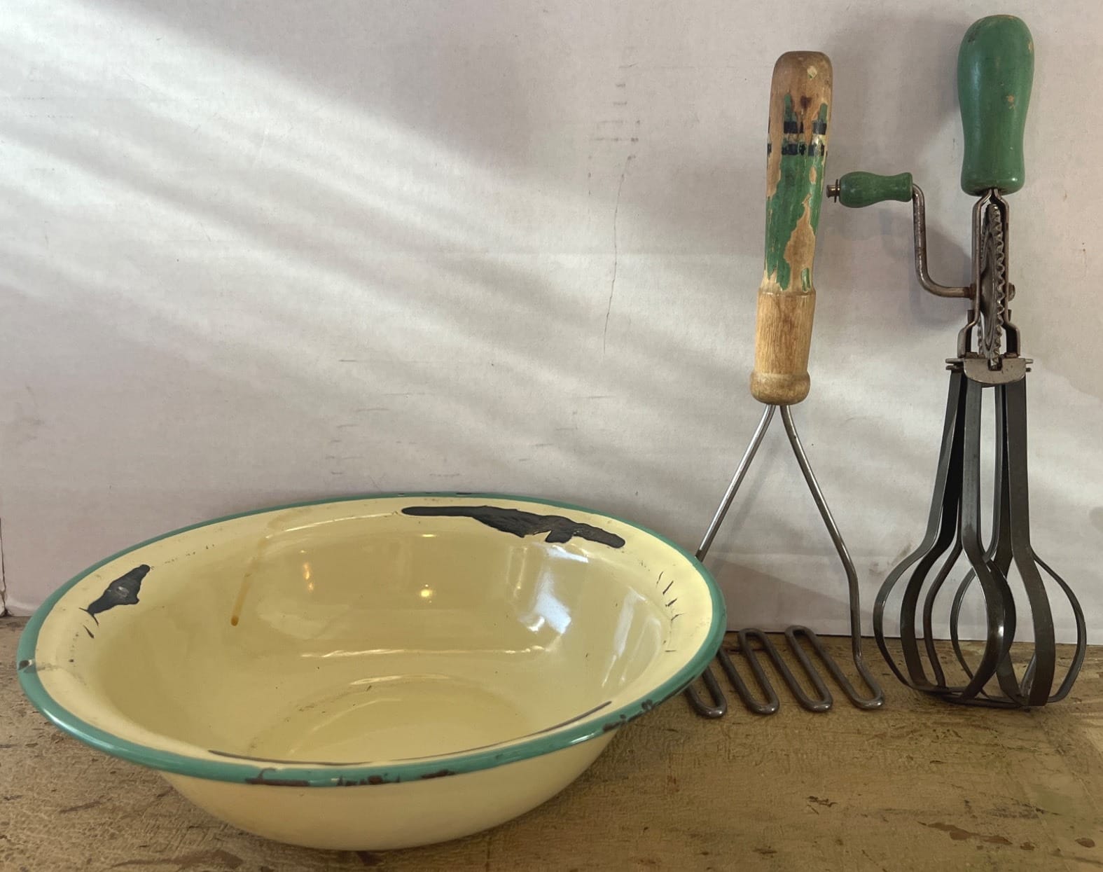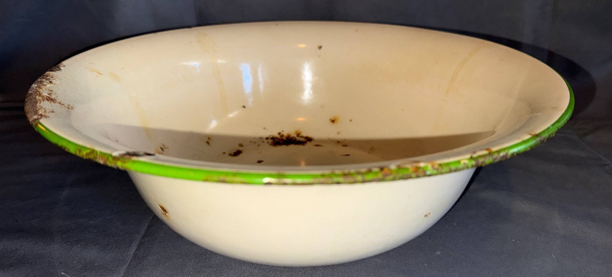 1020 Enamelware Bowl with Green Trim, 13?