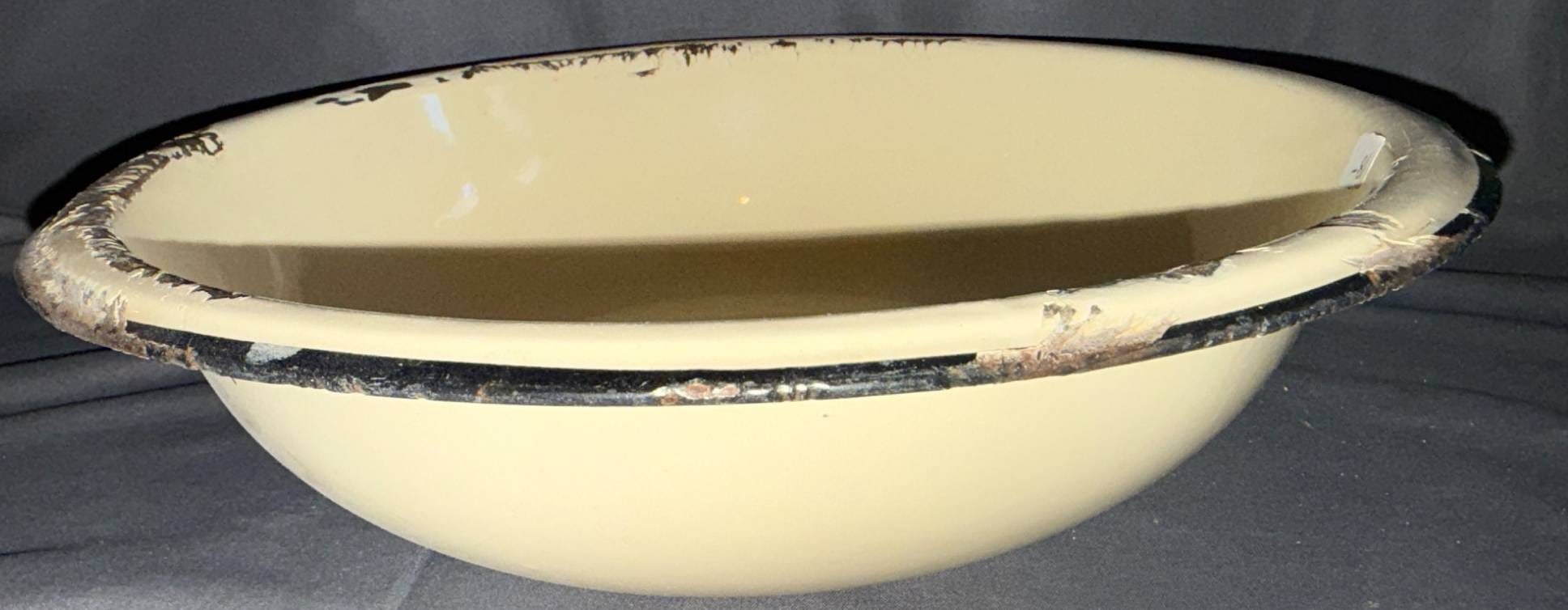 1021 Cream-Colored Enamel Bowl with Black Rim, 12?
