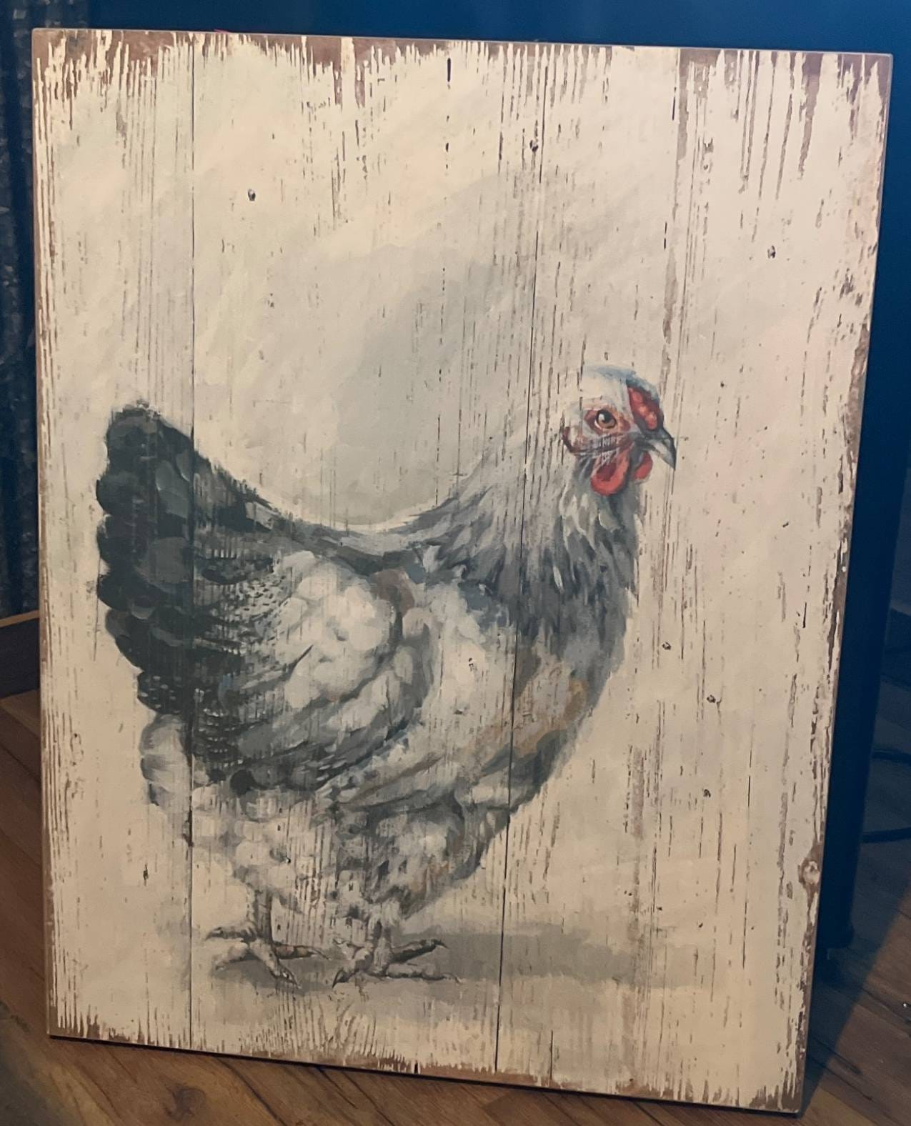 11 Chicken Print on Distressed Wood Panel, 20×26