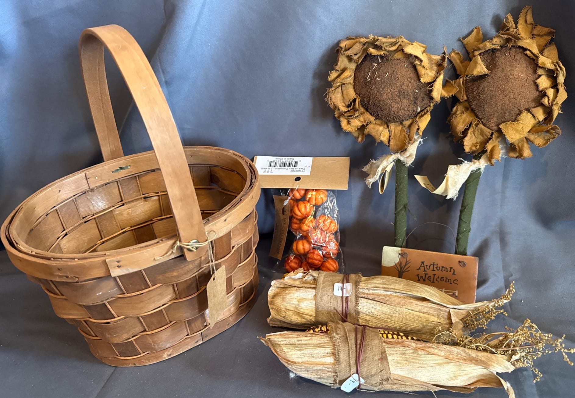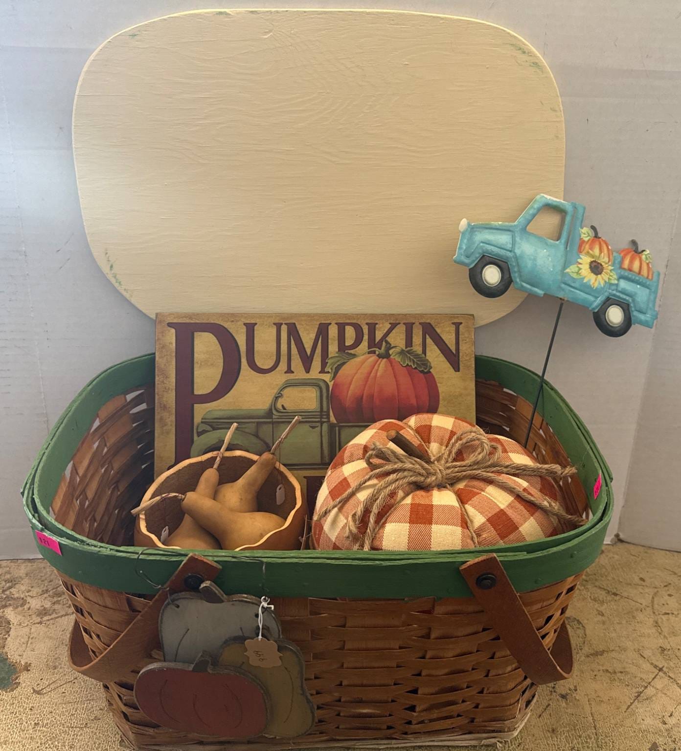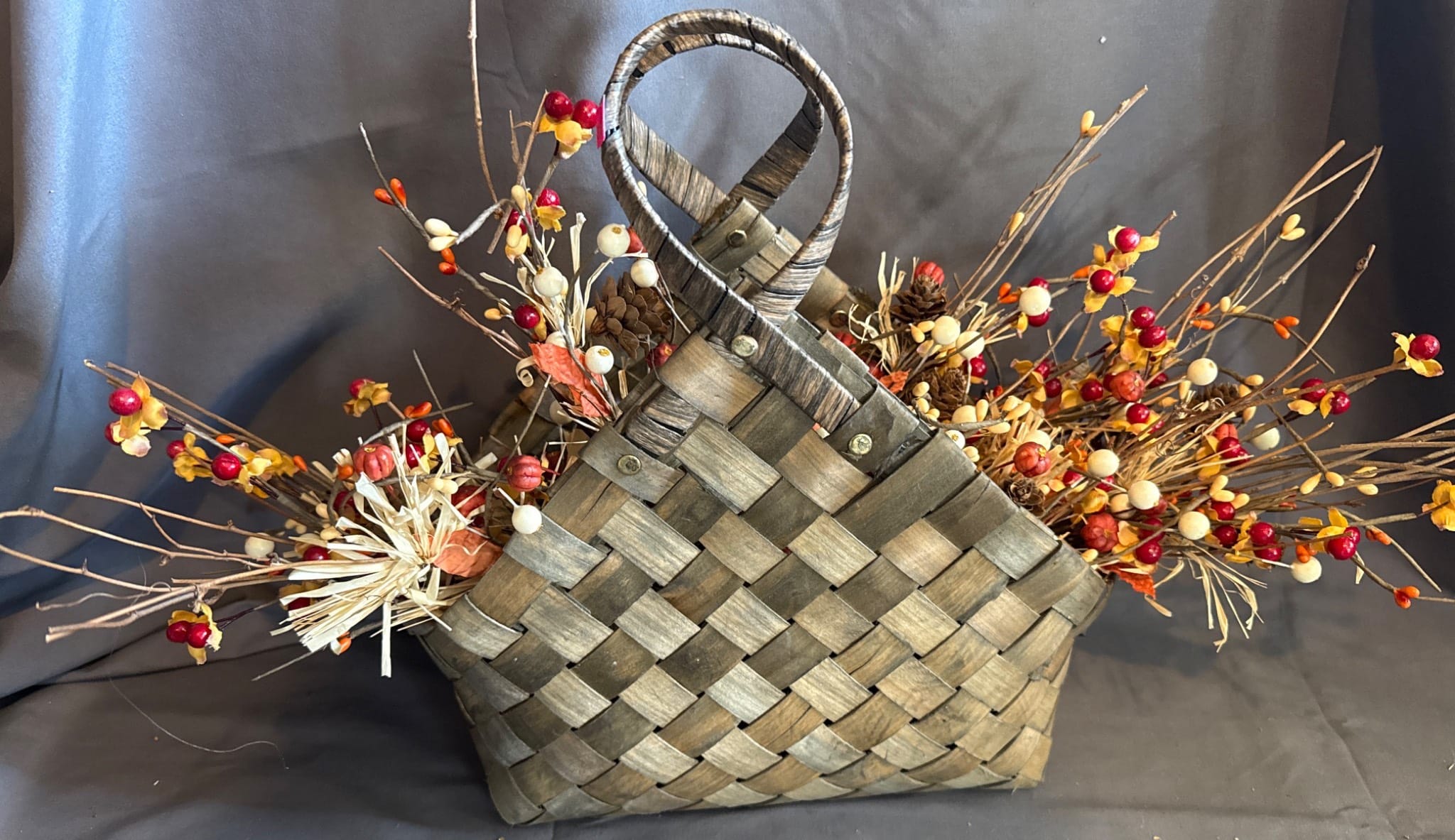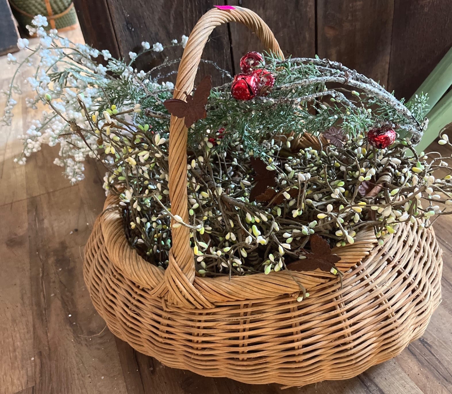 47 Braided Basket With Fabric Gingerbread Ornaments