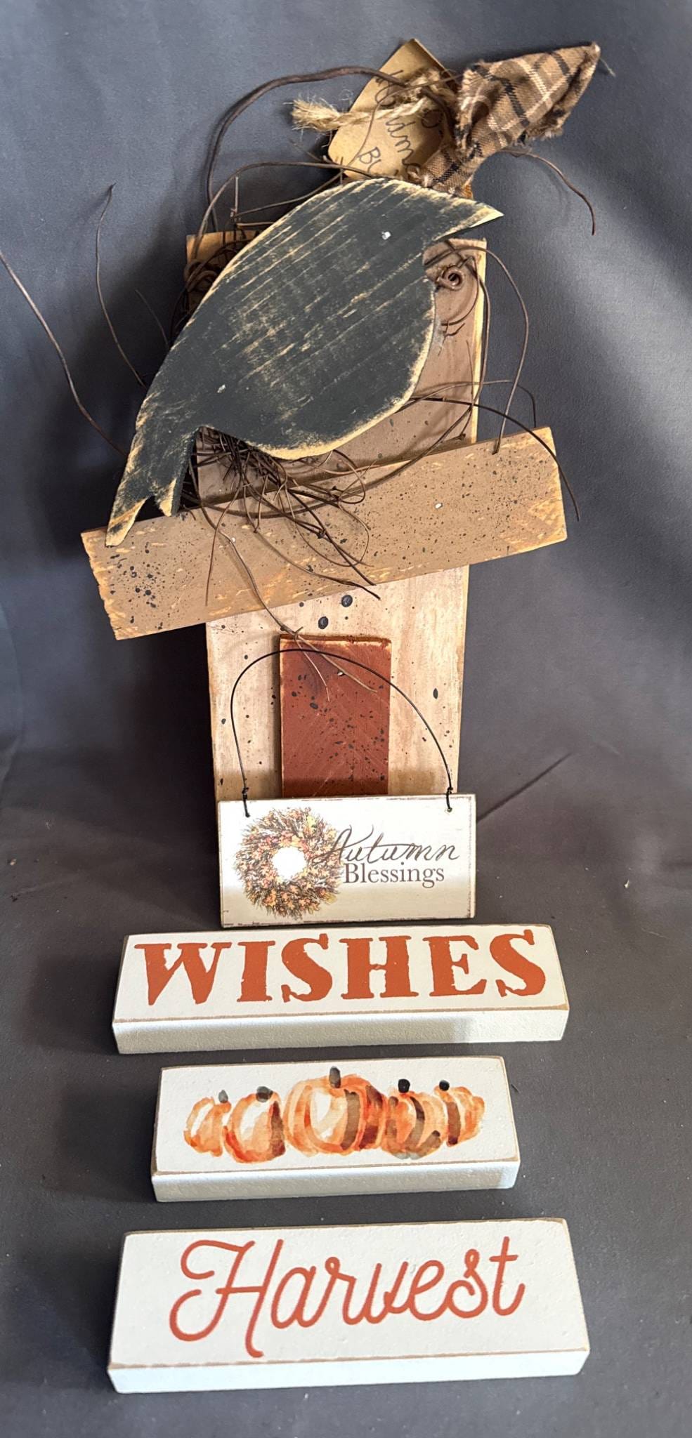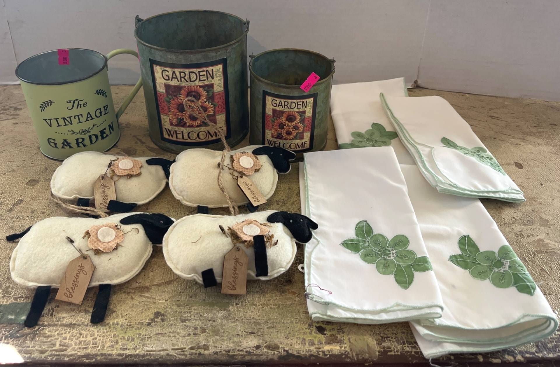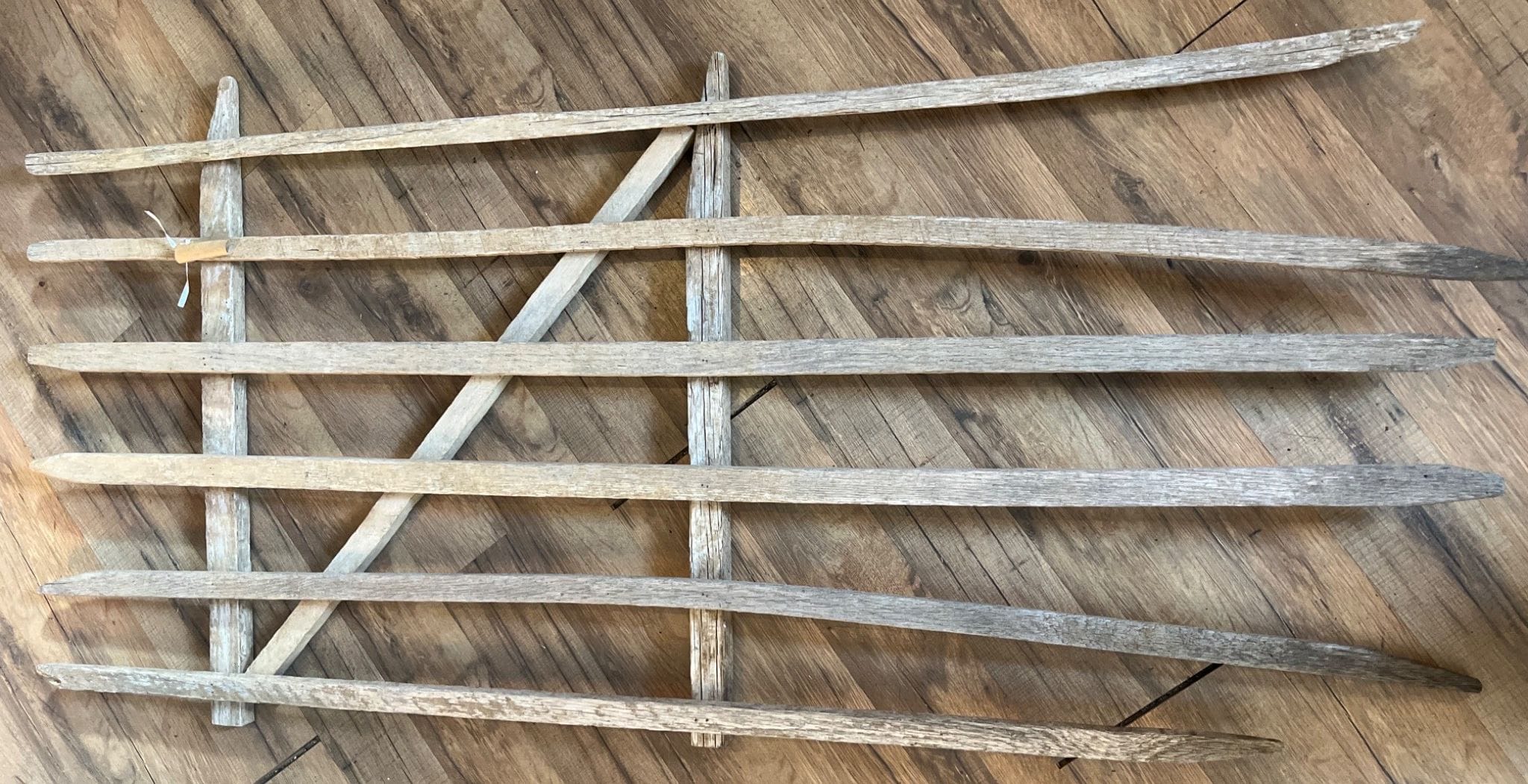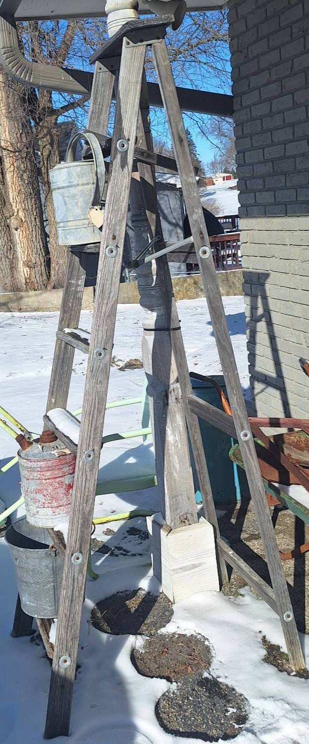 3015 7ft Wood Ladder with Galvanized Pieces: Bucket, Watering Can, Fuel Can