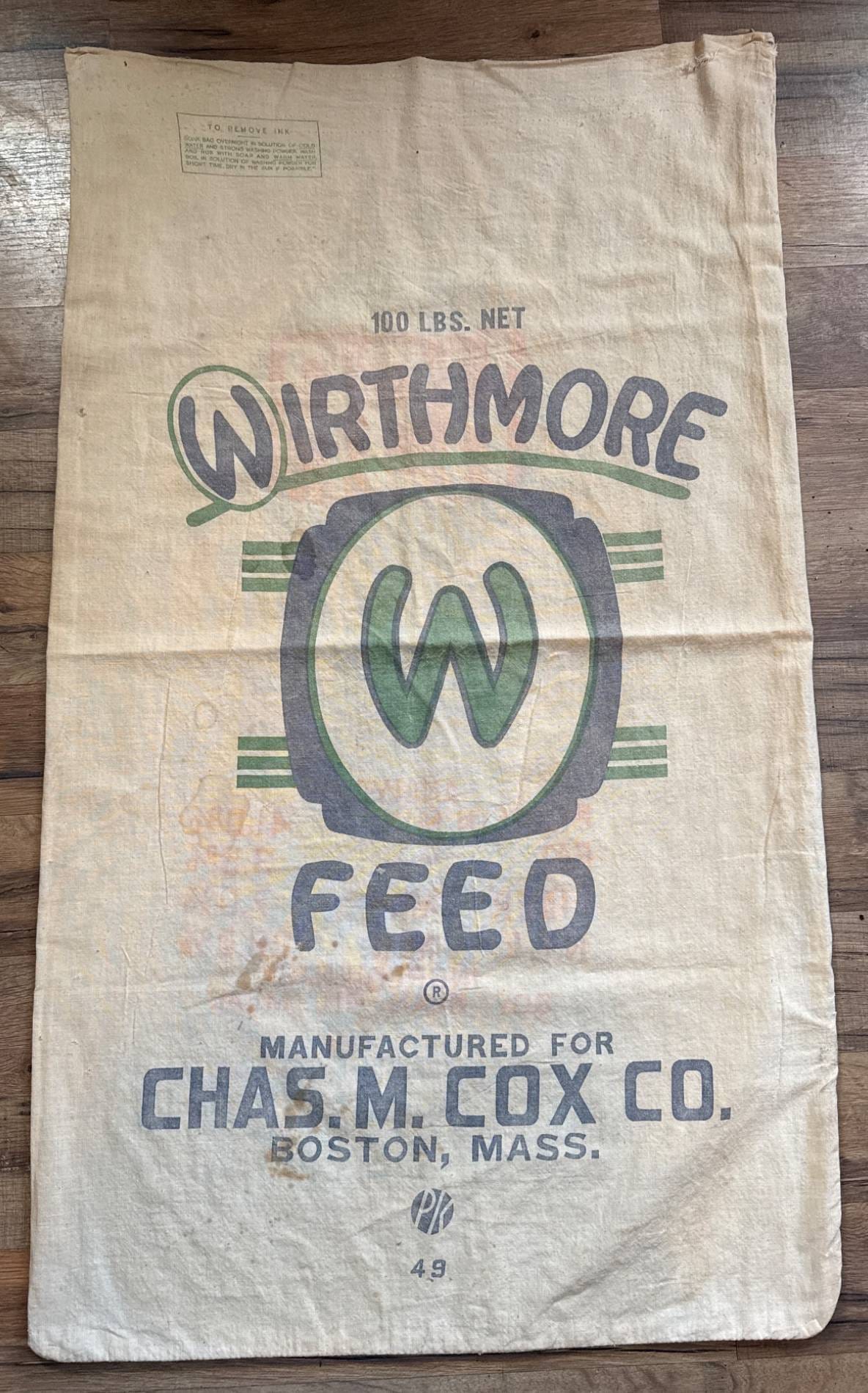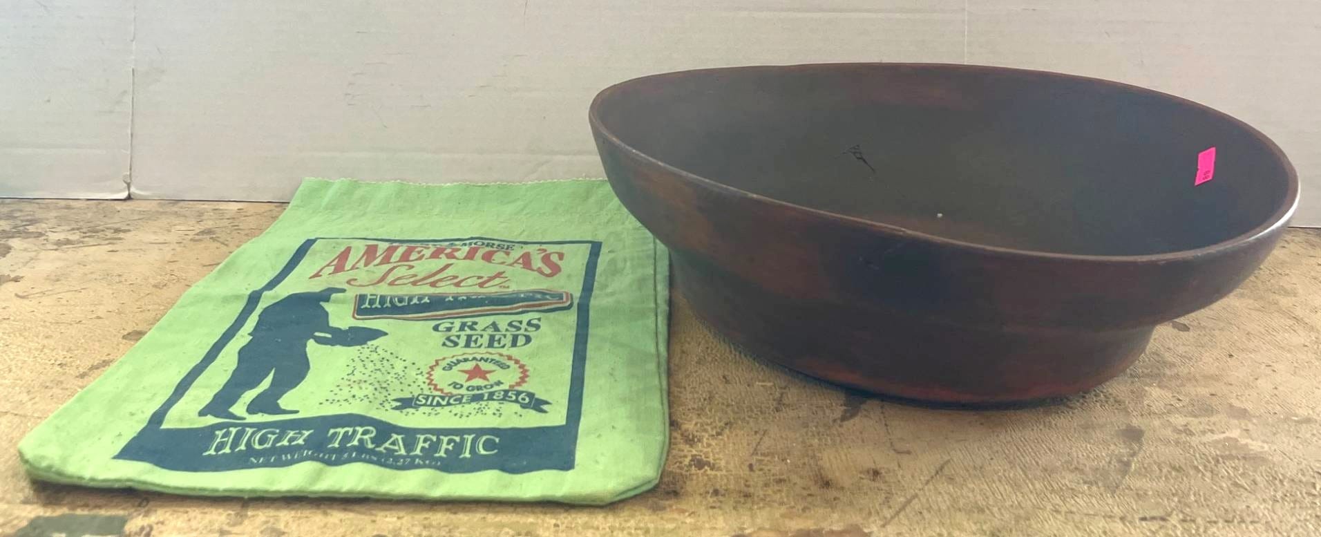 89 Ferry-Morse Grass Seed Sack and Wooden Primitive Bowl