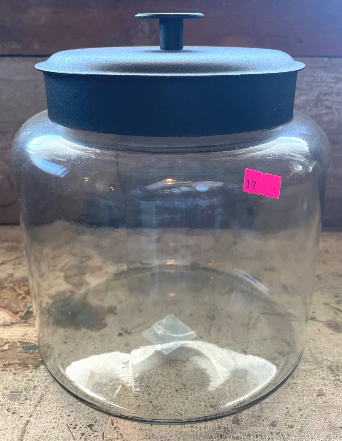 17 Clear Glass Jar With Black Metal Lid, 10×9