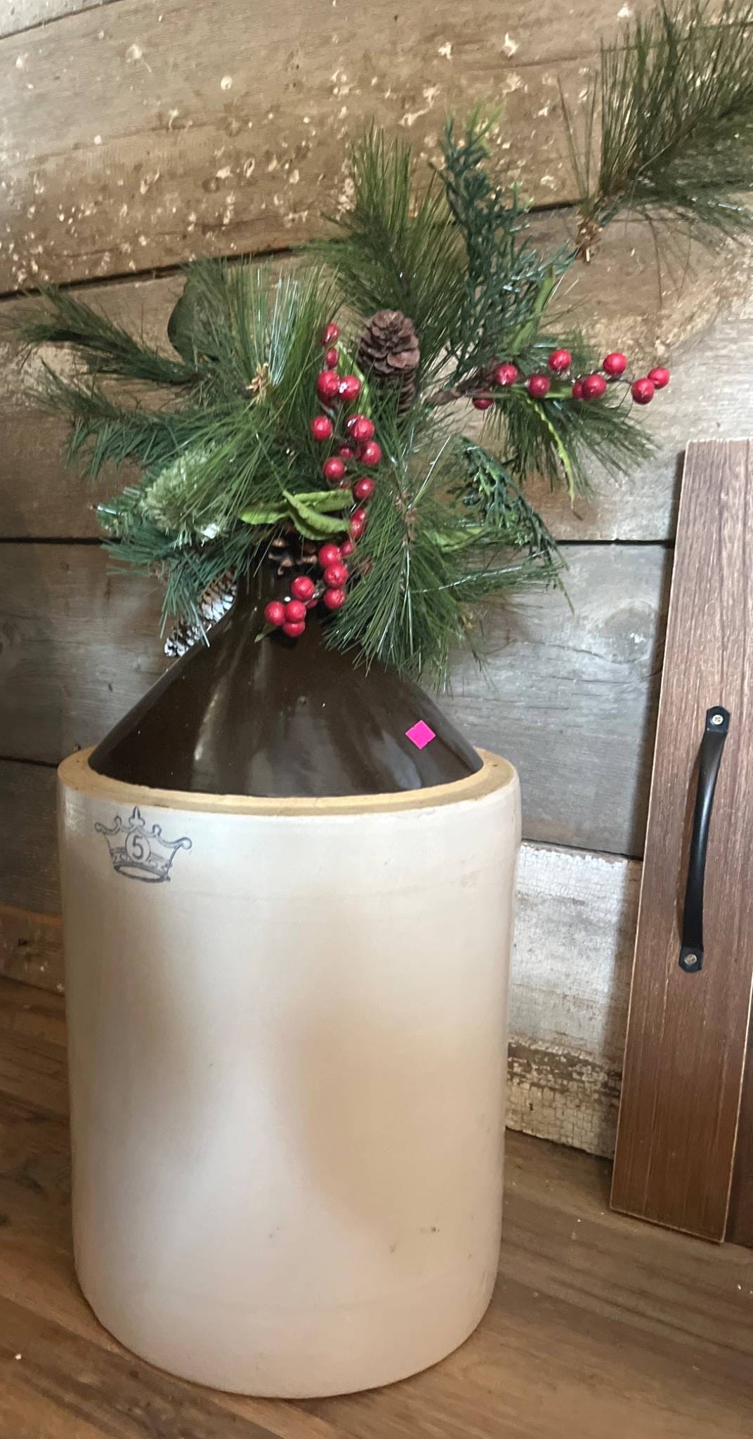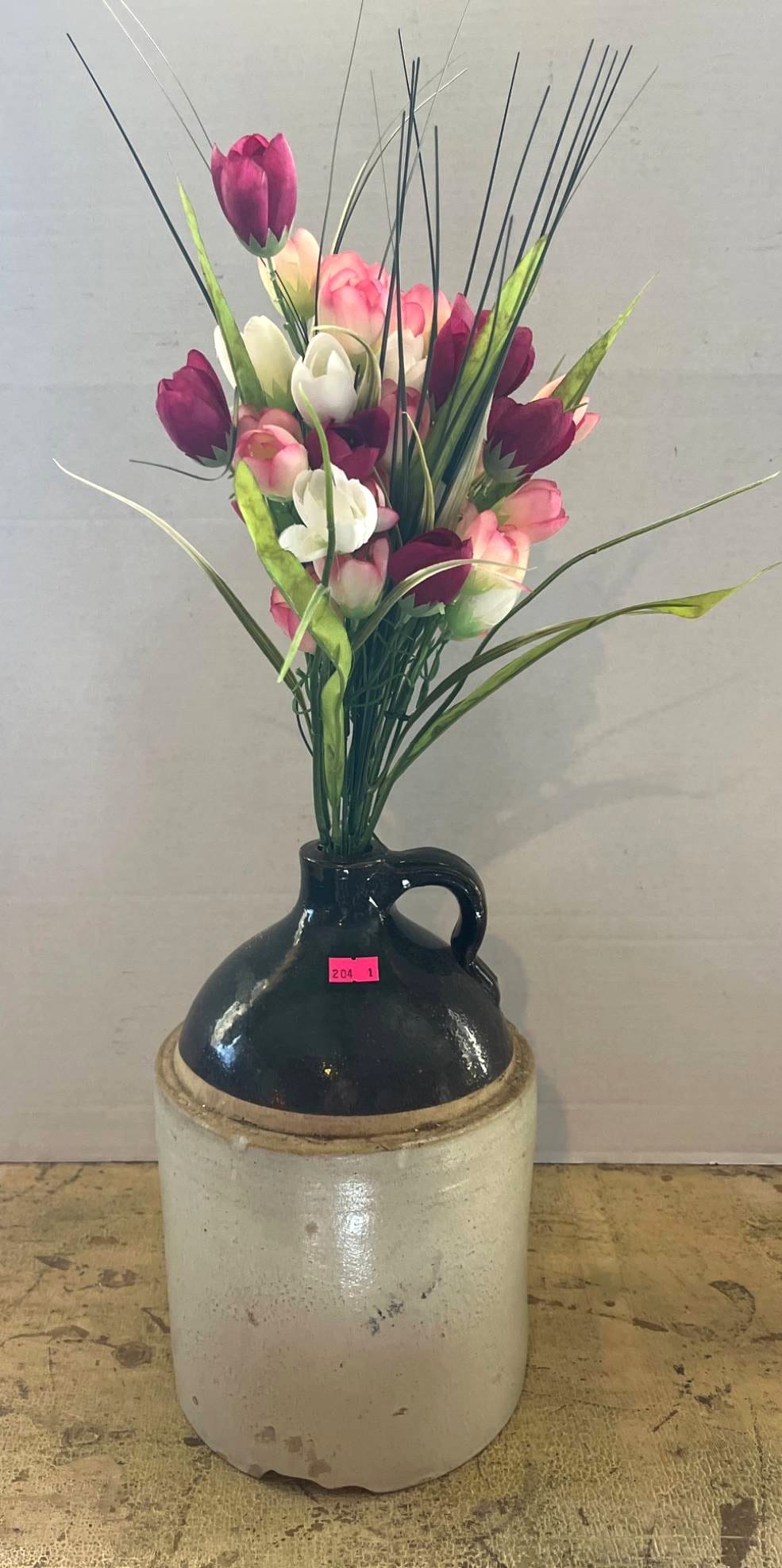 87 No. 5 Two-Tone Stoneware Crock Jug with Faux Florals
