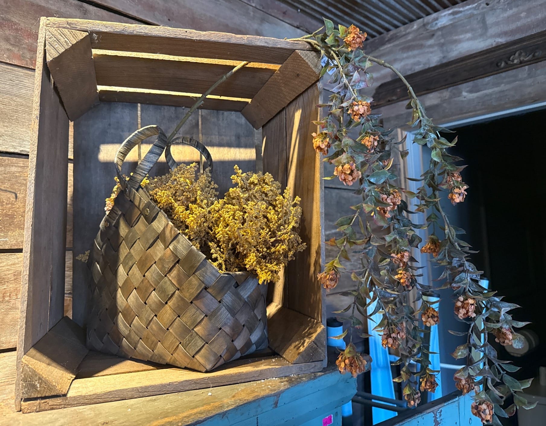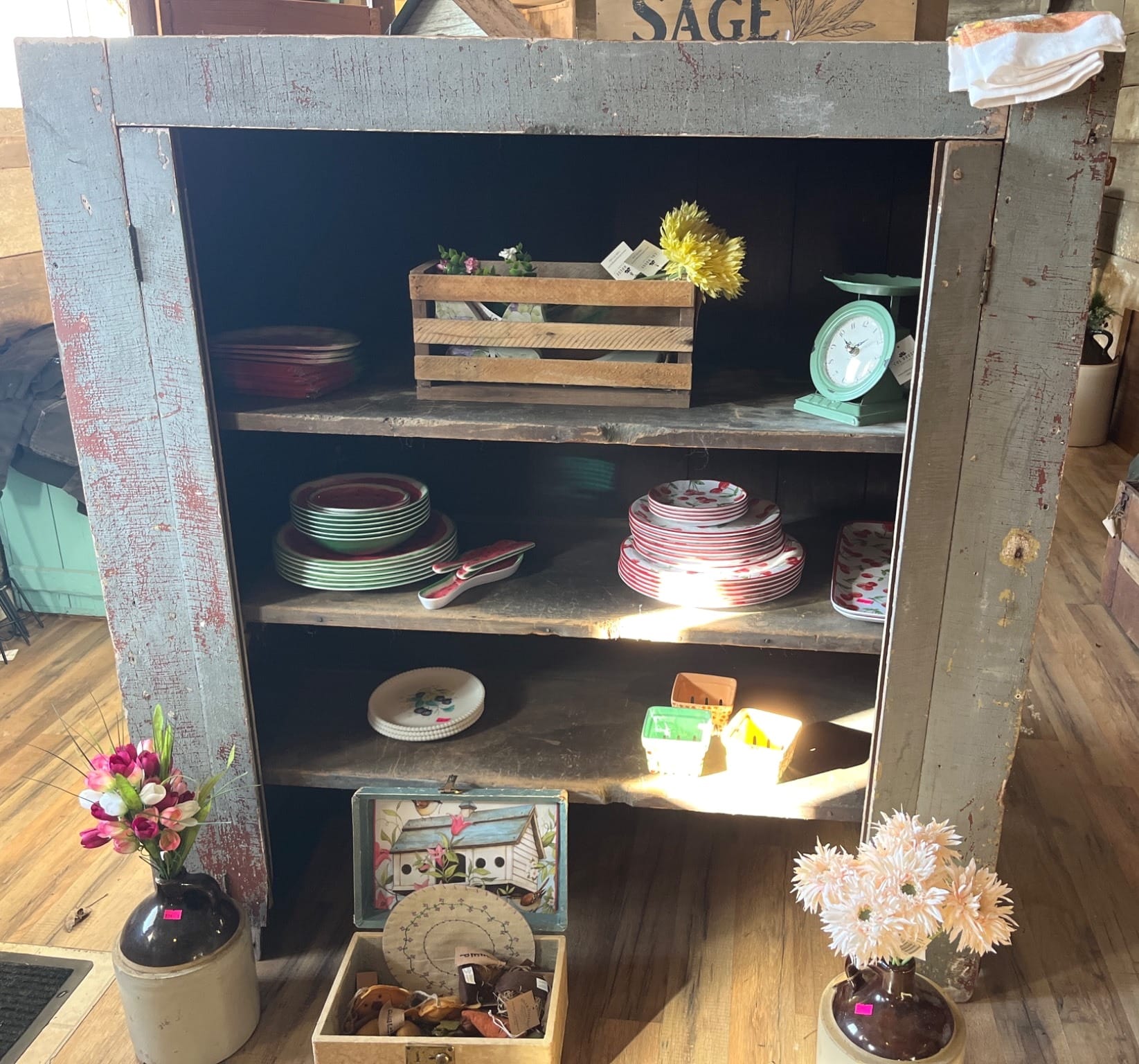 510 Primitive Wood Shelf Unit with Crate Base, 25x40x14?