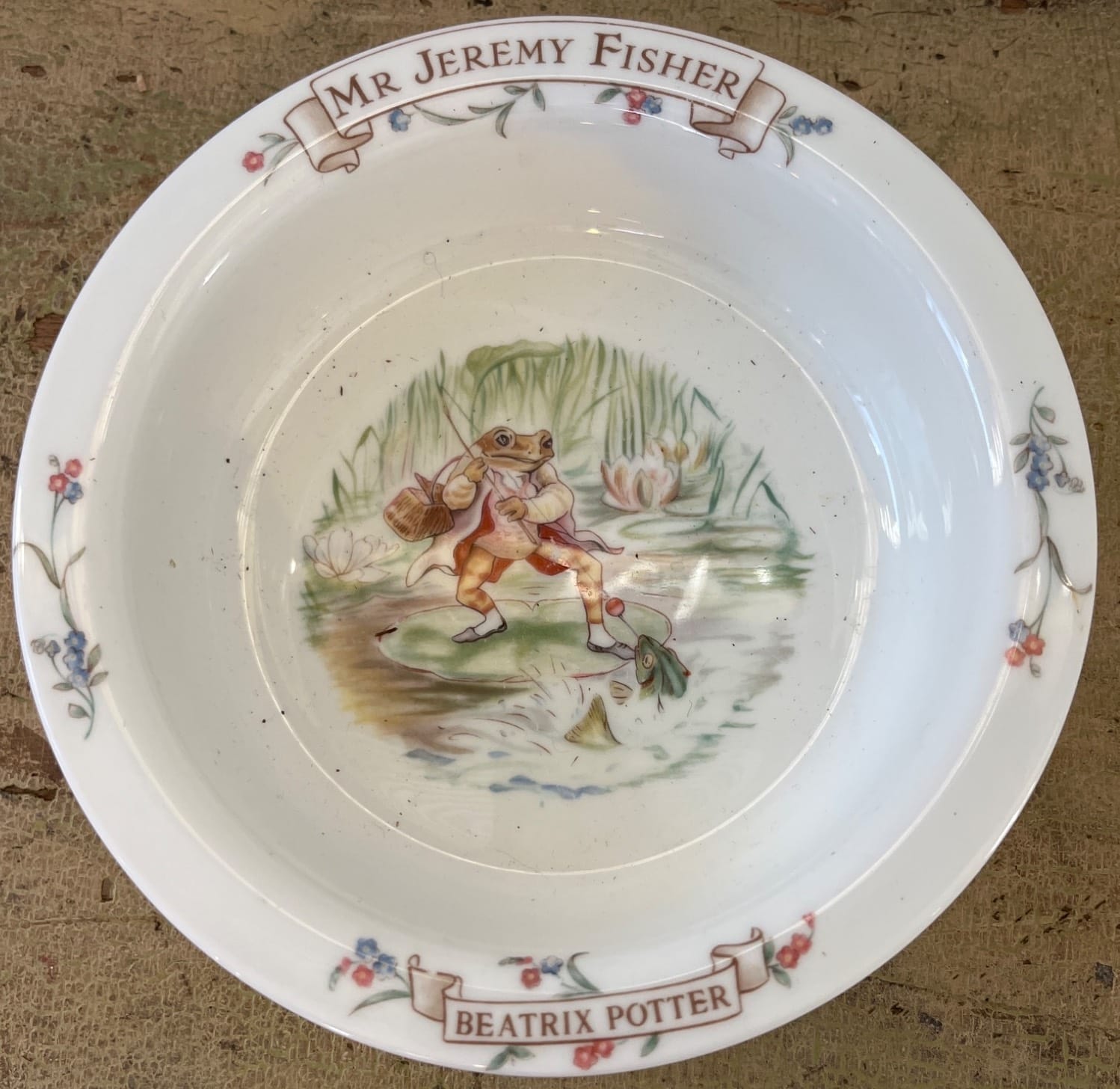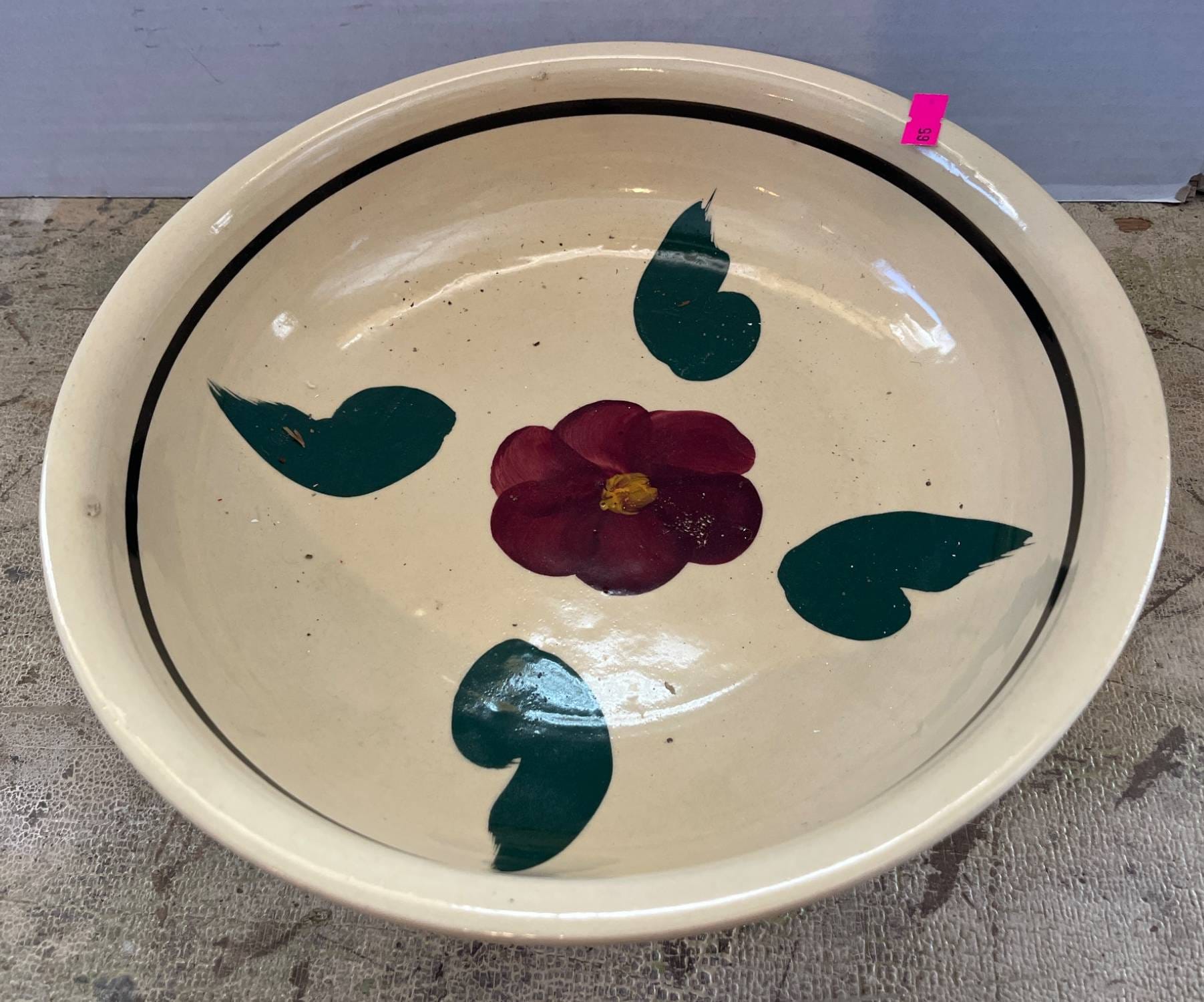 57 R.F. Spaghetti Stoneware Bowl with Hand-Painted Floral Design, 11?