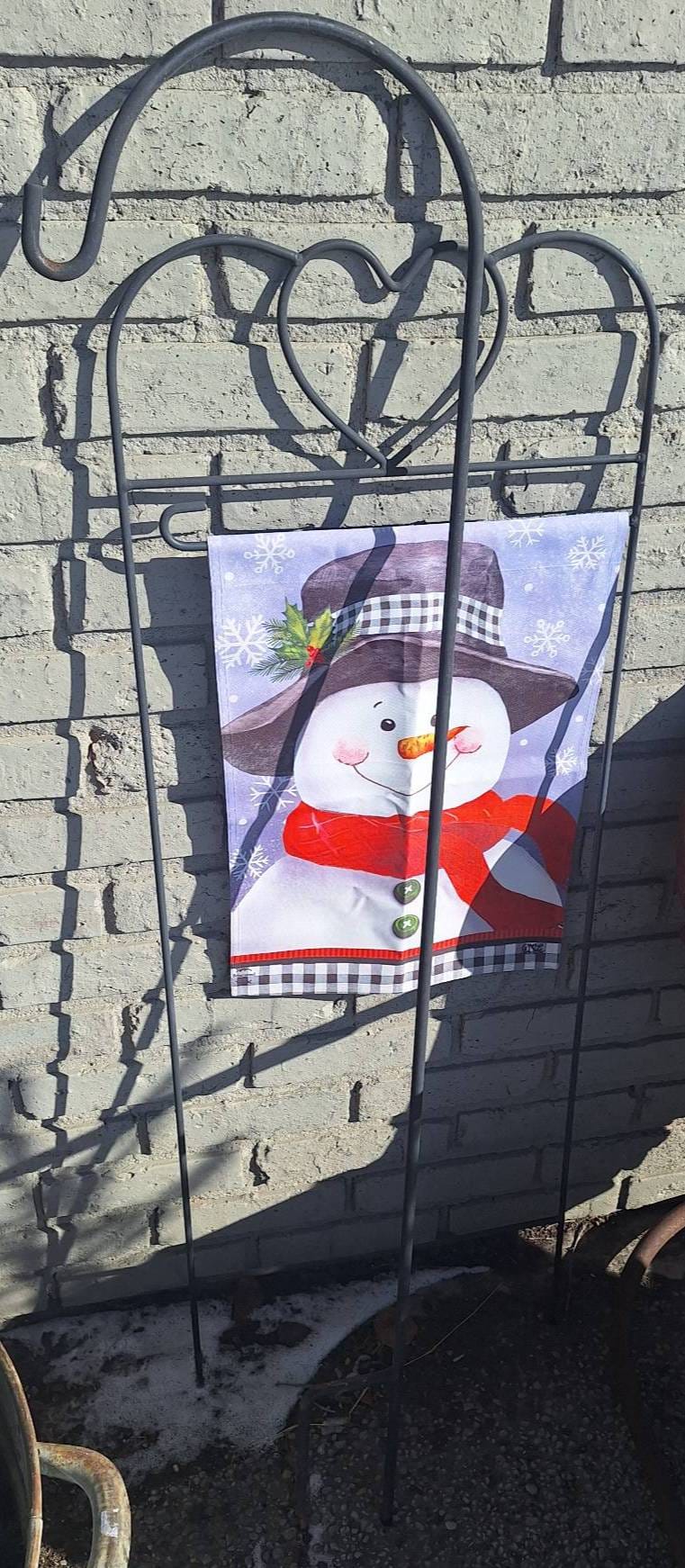 3011 Metal Garden Flag Holder with Snowman-Themed Flag