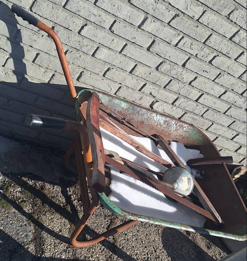 3016 Metal Wheelbarrow with Tools Inc. Saws and Funnel
