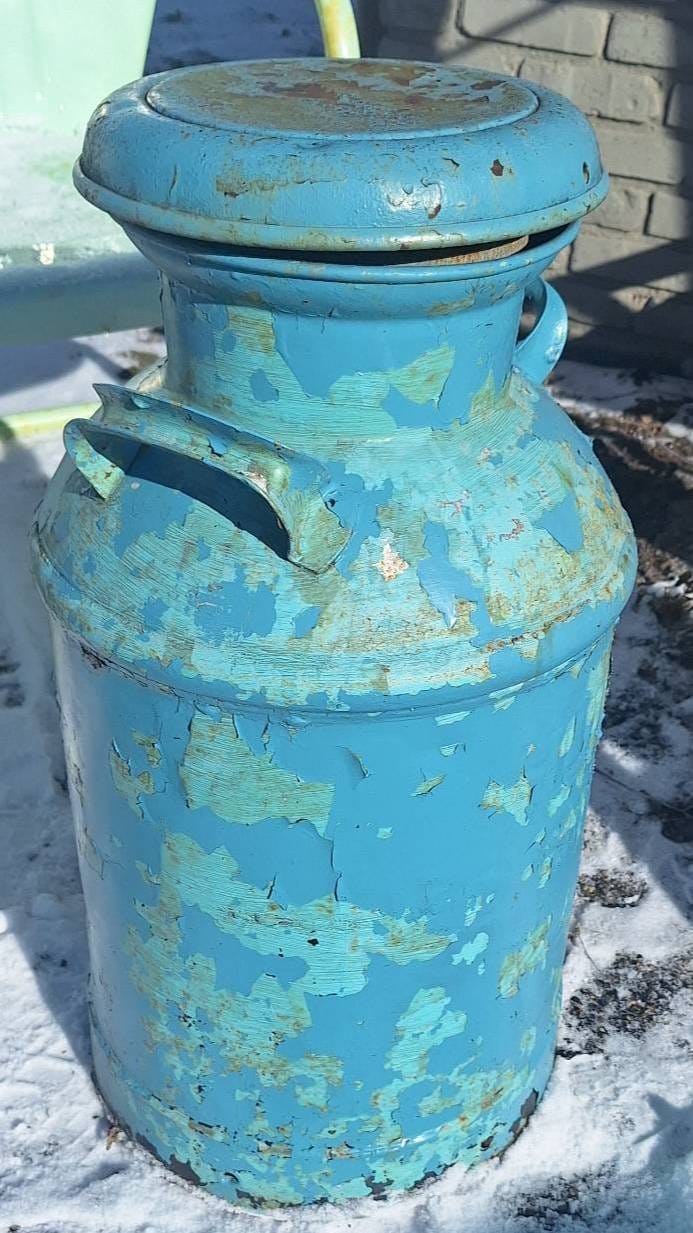 3017 Blue Metal Milk Can with Handles, 24in