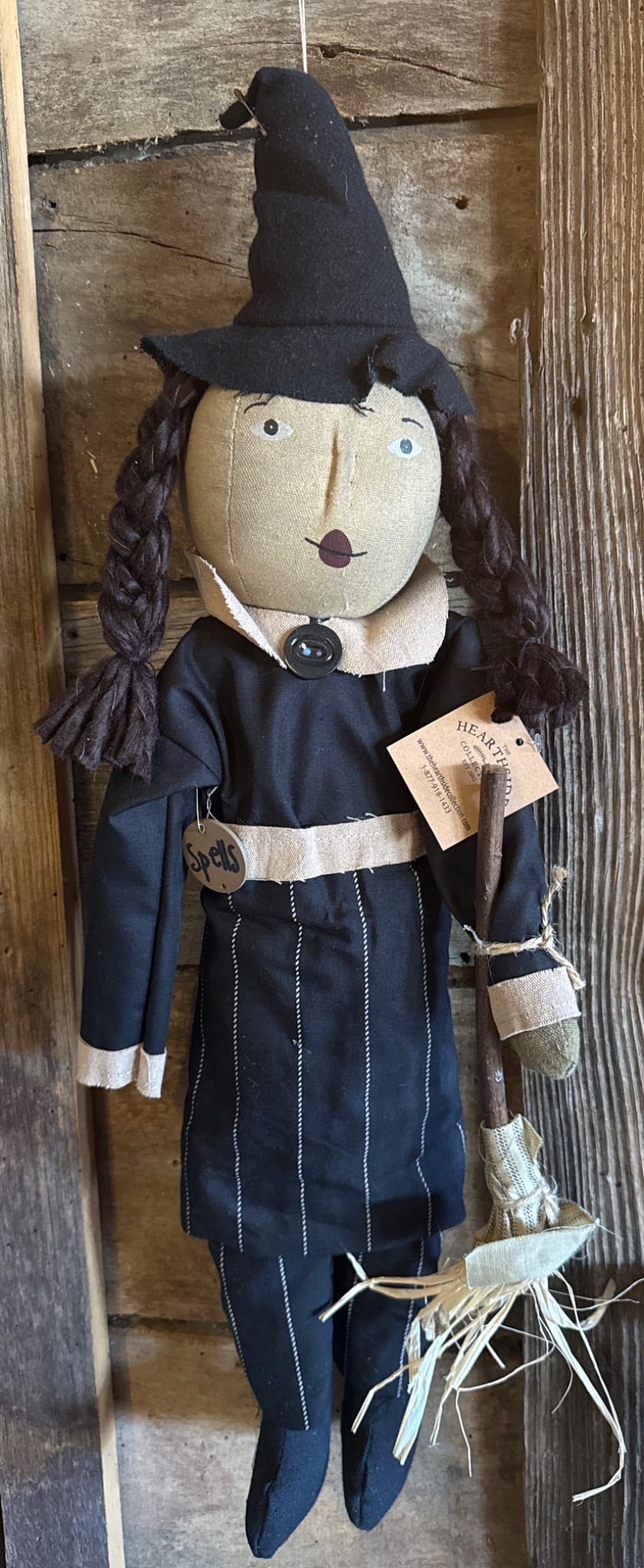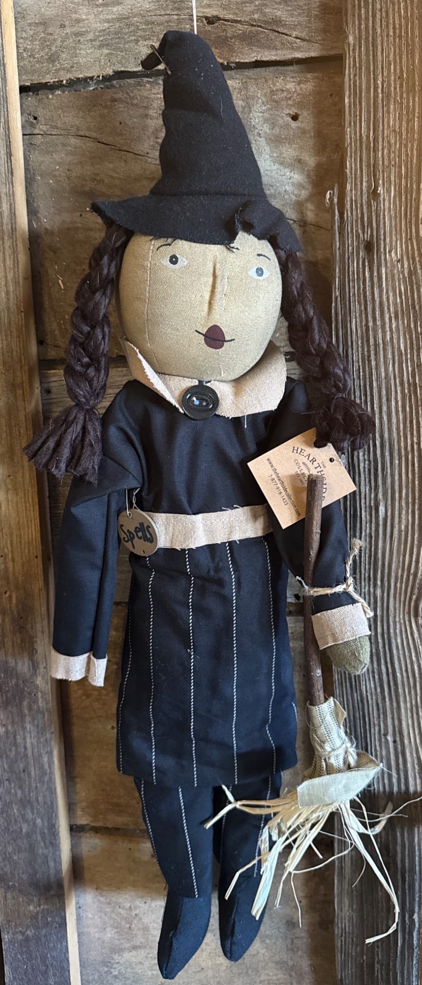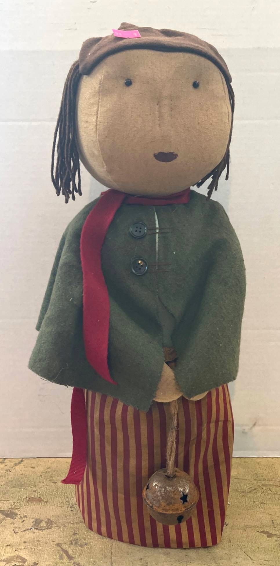 71 Fabric Doll with Yarn Hair, Green Cloak, and Striped Skirt, 19?