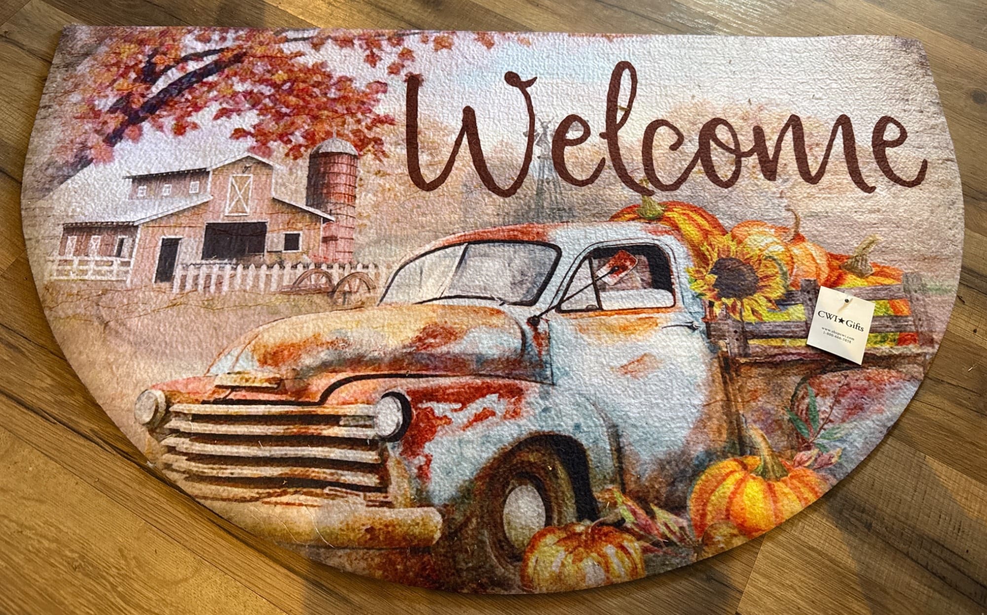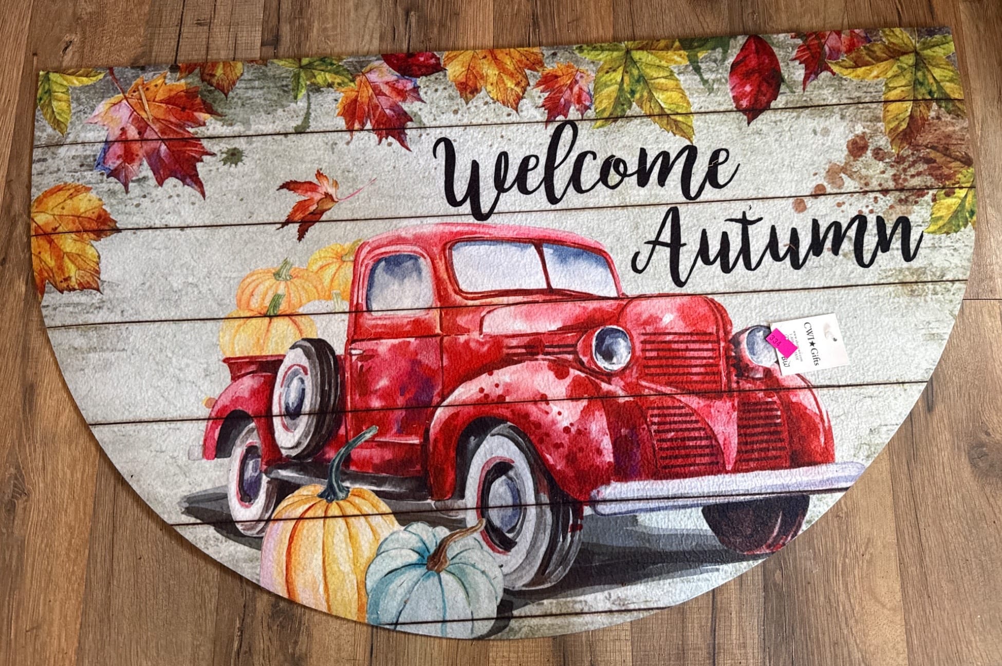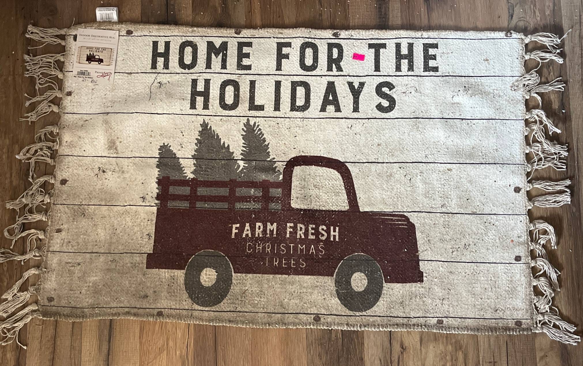 77 Indoor Rug with Truck and Holiday-Themed Print, 34×20 Inches