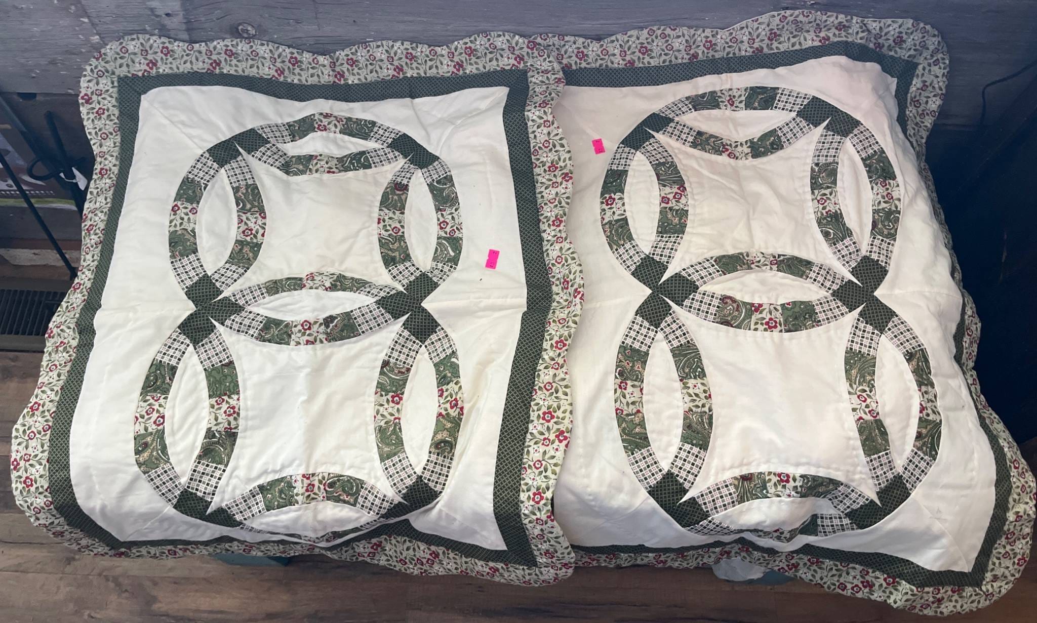 43 Quilted Pillow Shams with Double Wedding Ring Pattern, 29 1/2×24 Inches