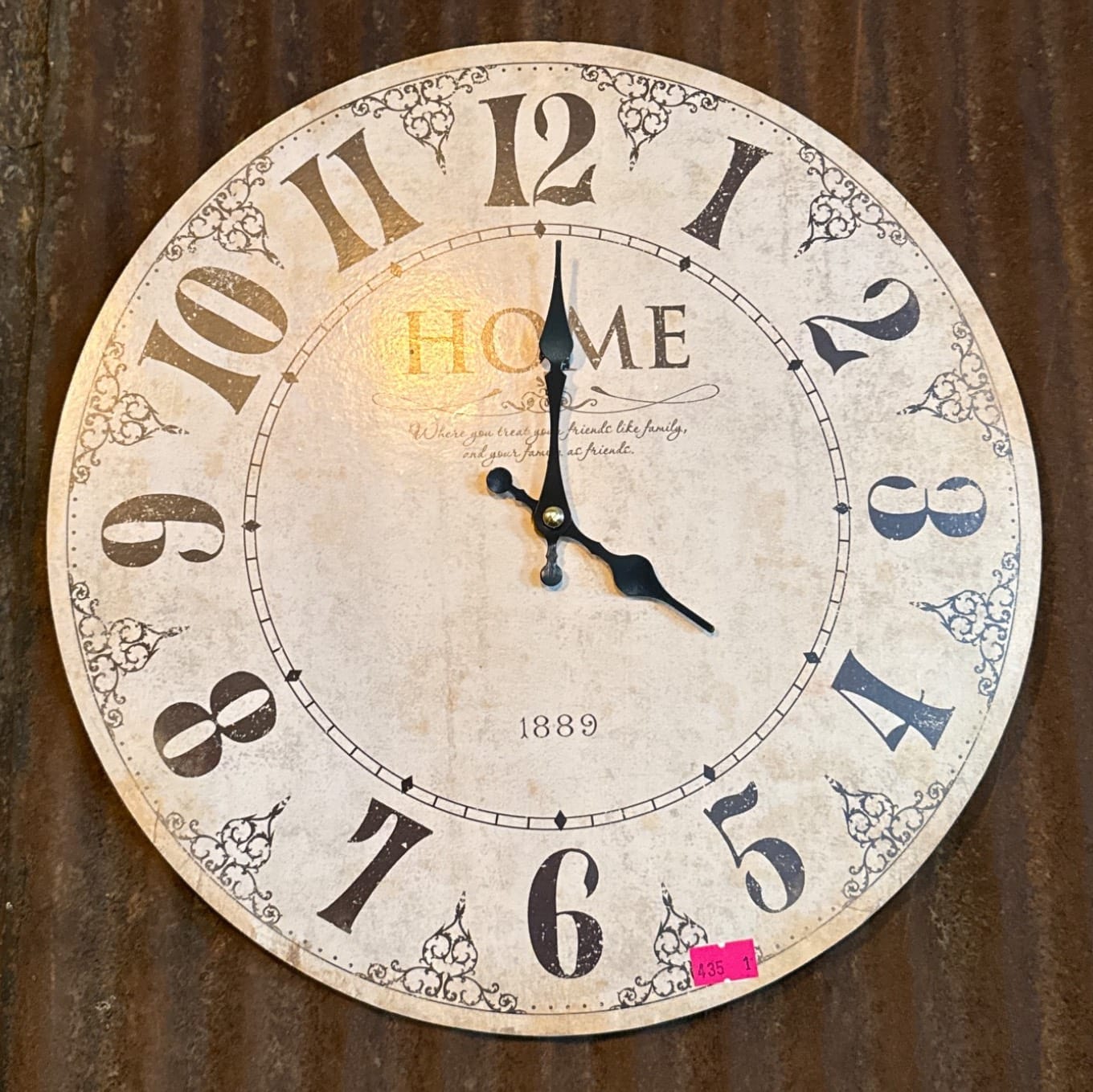 435 Round Wall Clock with Distressed Finish and Decorative Numerals, 13.5”x13”