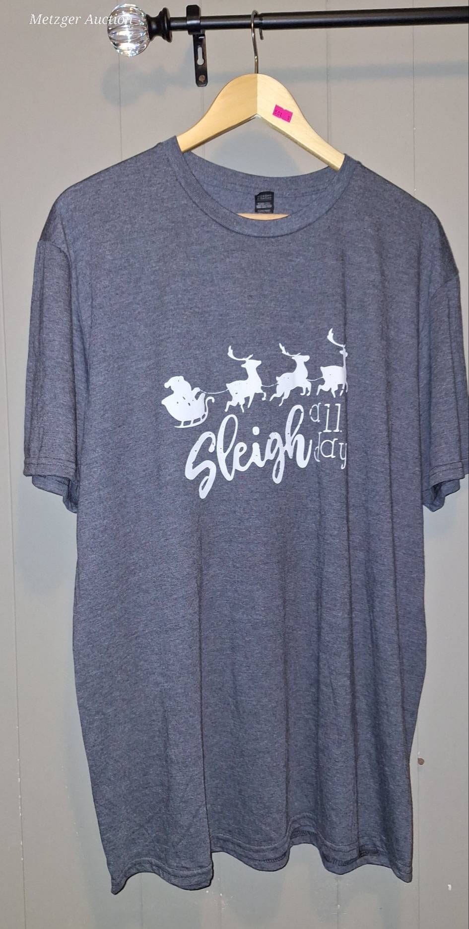 501 Gray Short-Sleeve Graphic T-Shirt, Cotton-Blend “Sleigh all day”, Size XL