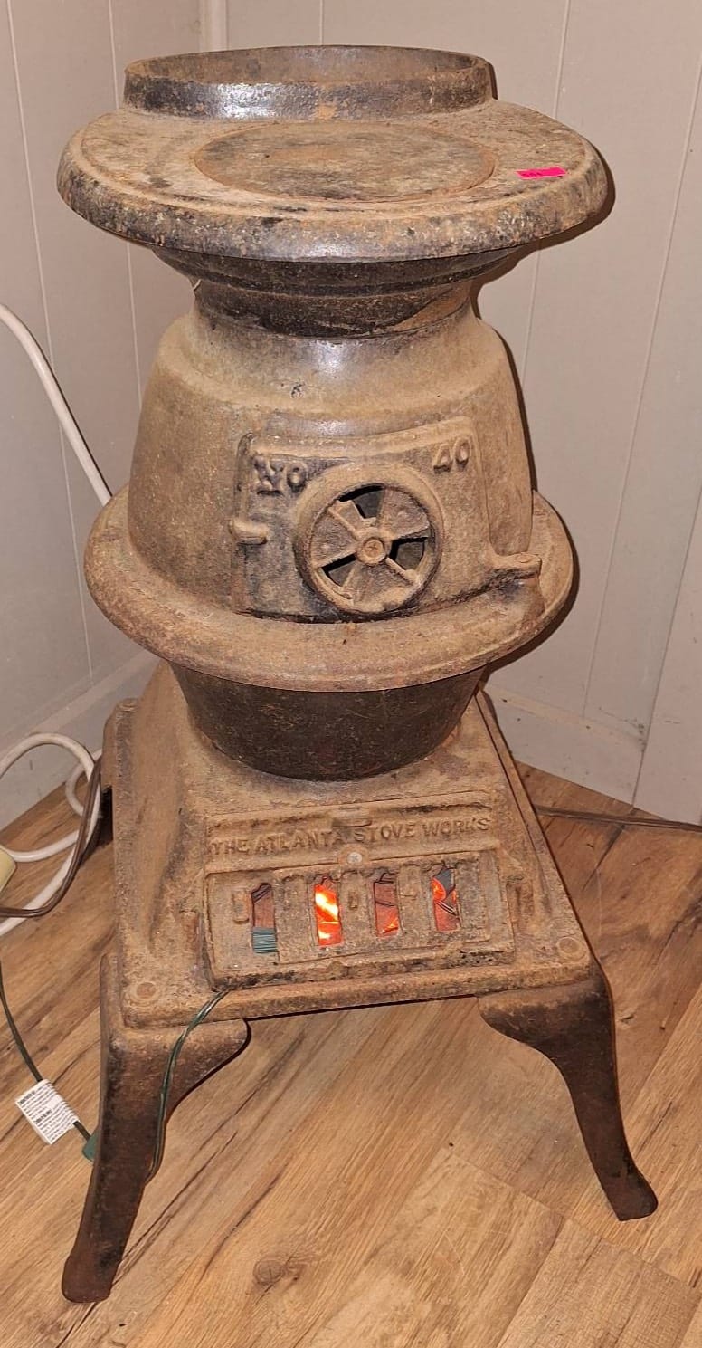 504 The Atlanta Stove Works Cast Iron Stove No.40 with Lit Interior Display, 11x25in