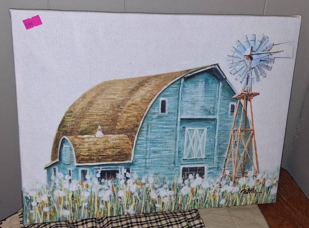 506 Canvas Print Depicting Blue Barn and Windmill, 16×12?