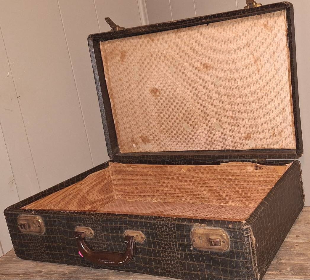 511 Black Faux Crocodile Leather Suitcase with Metal Hardware, 6x12x21?