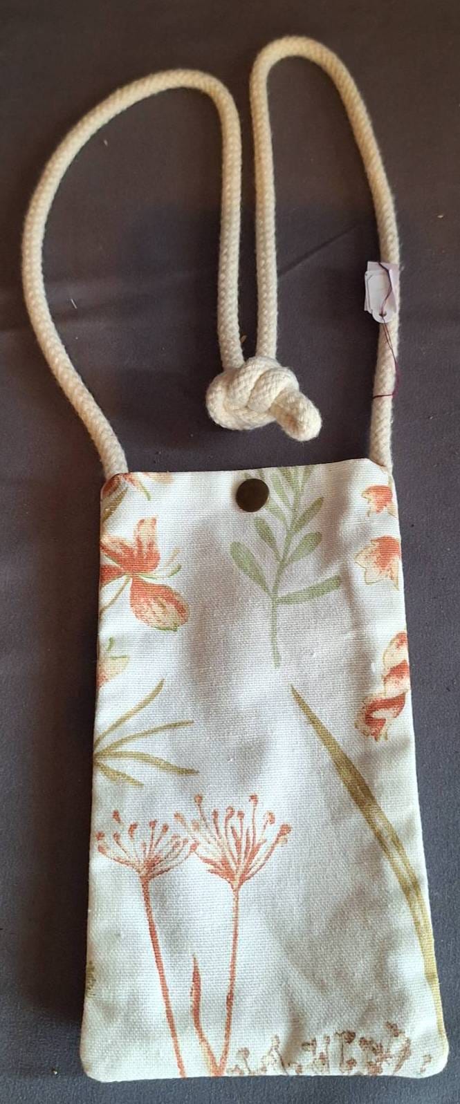 515 Fabric Pouch with Botanical Print and Rope Strap, 7?