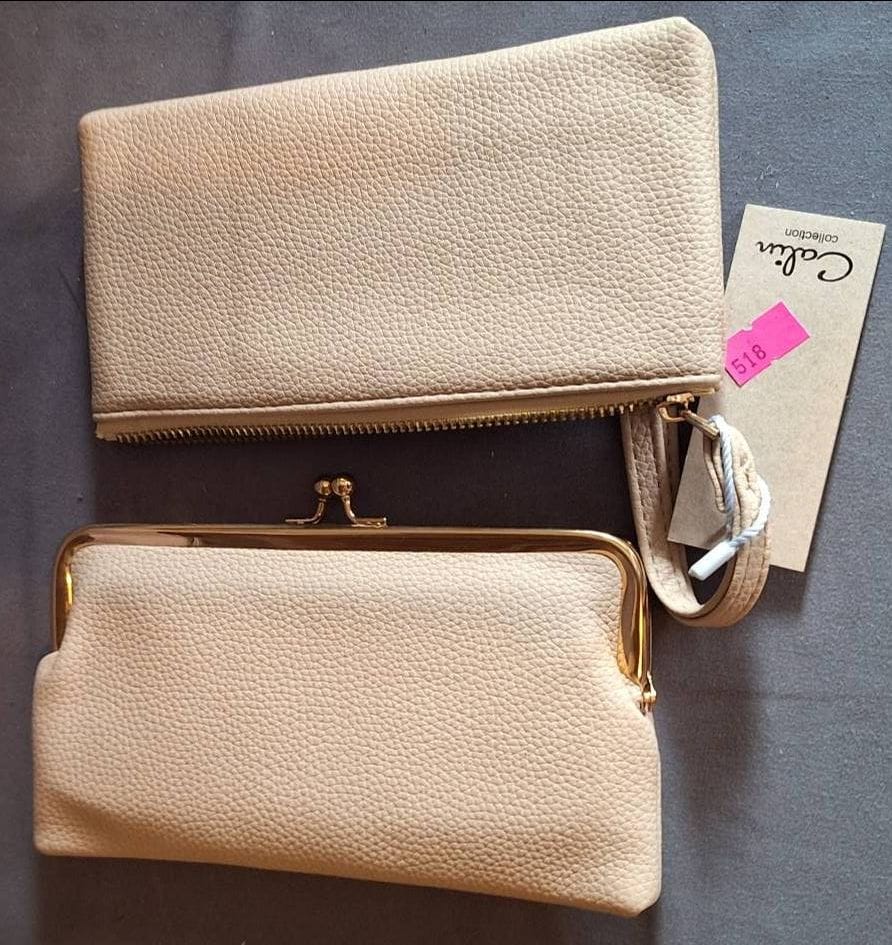 518 2 Piece Beige Faux Leather Wallets with Gold-Tone Accents