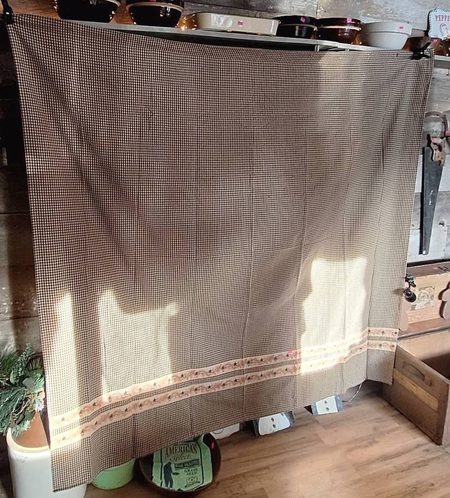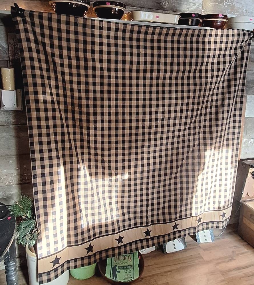 522 Gingham-Pattern Fabric Curtain with Star Border, The Country House Collection, 72×72?