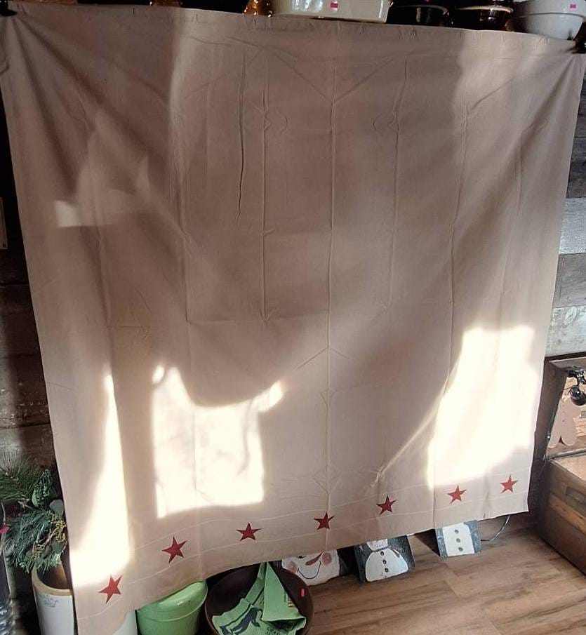 525 Beige Fabric Valance with Red Star Accents, 14×69