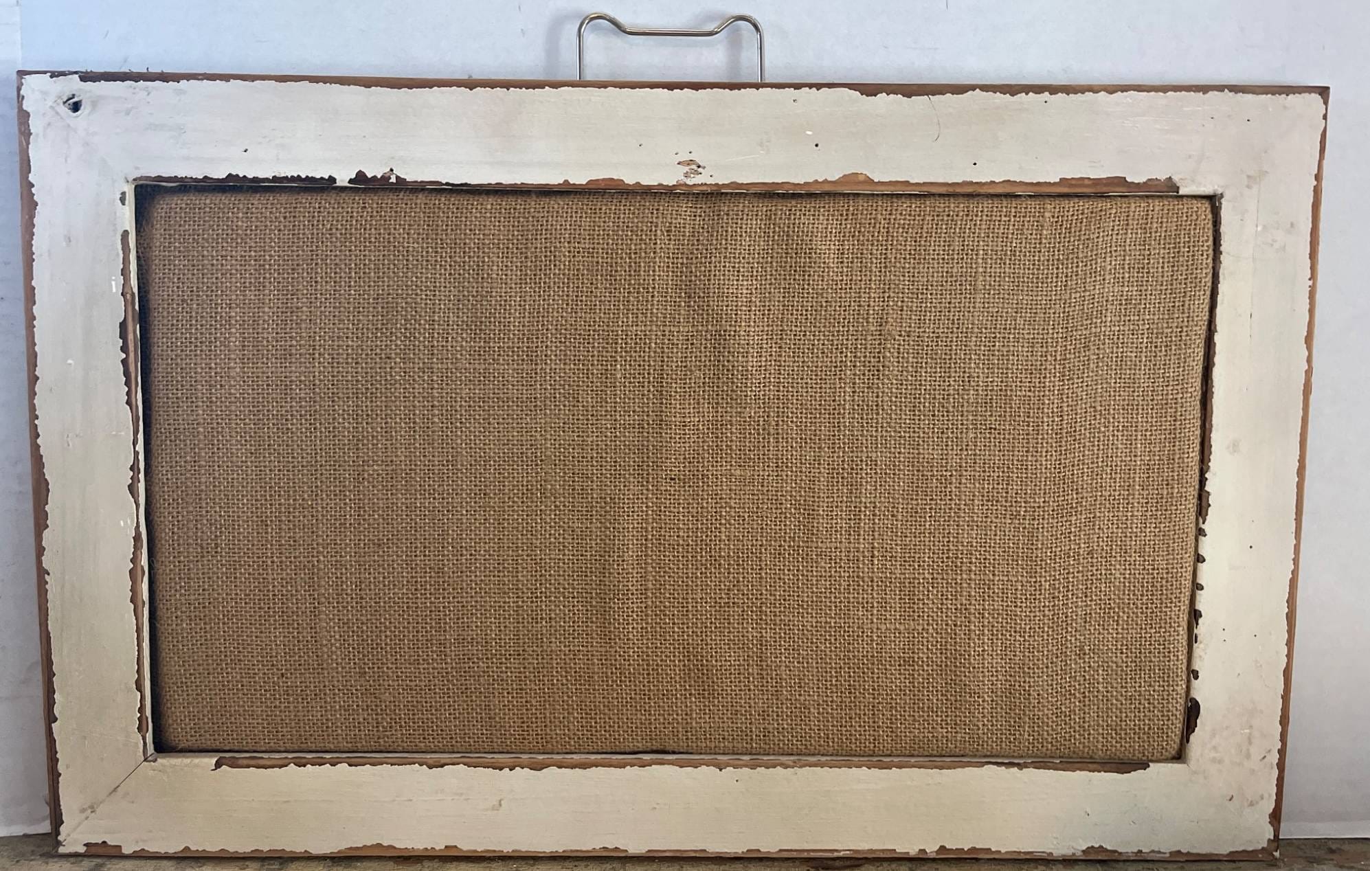 526 Hanging Pin Board with Rustic Frame and Burlap Center, 13×21