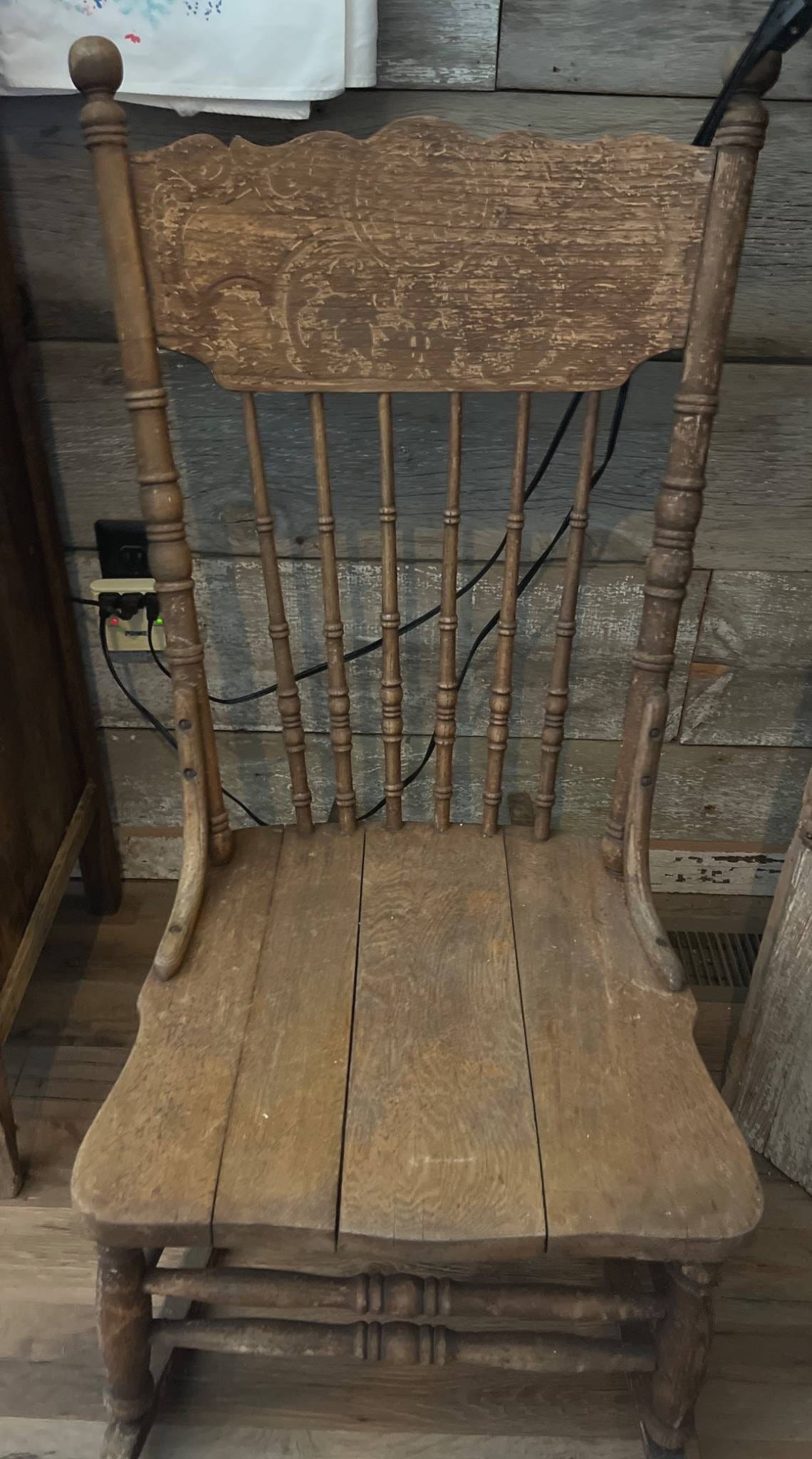 53 High-Back Chair with Turned Spindles and Engraved Backrest, 17×17?