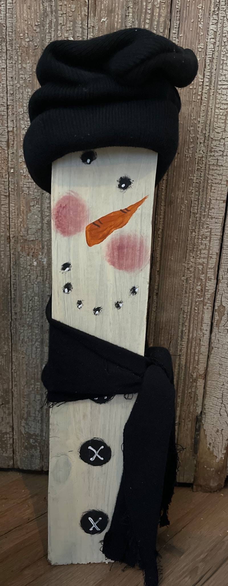 54 Painted Snowman Decorative Block with Black Hat and Scarf, 19”