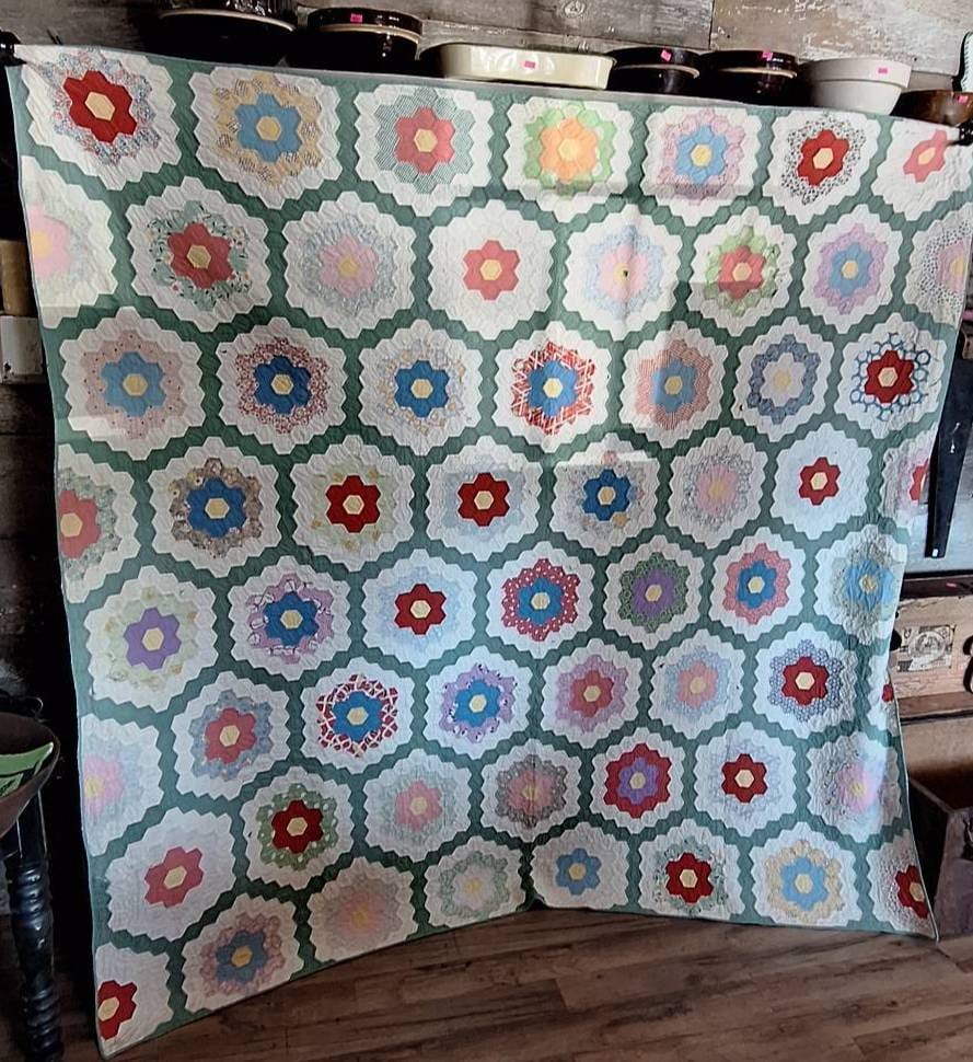 600 Handmade Patchwork Quilt with Floral Hexagonal Pattern, 75×80