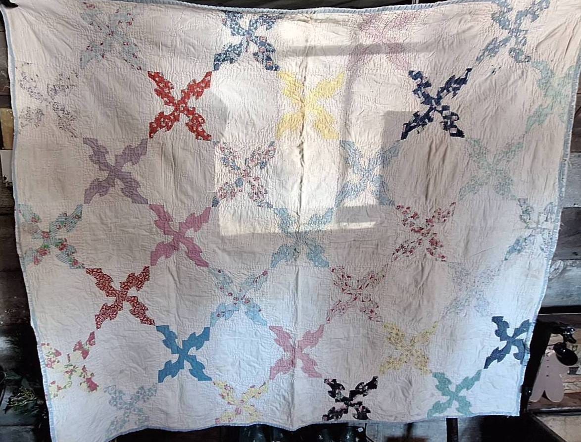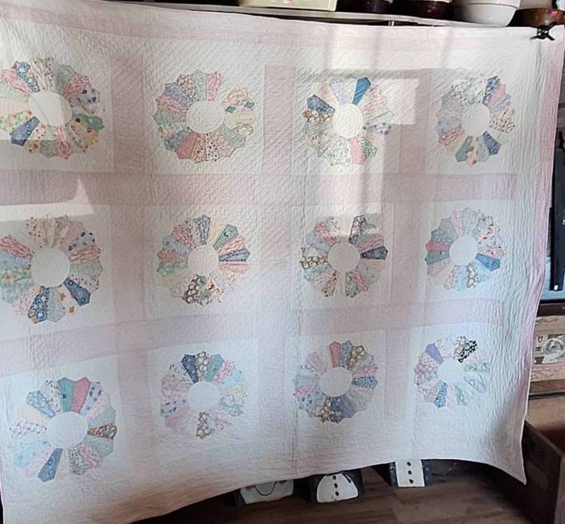 603 Patchwork Quilt with Dresden Plate Pattern, 69×81