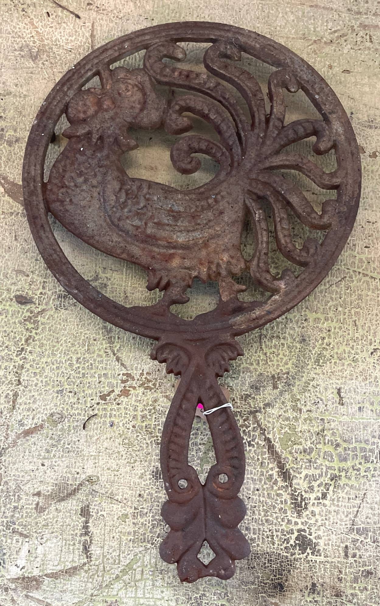 61 Cast Iron Trivet with Rooster Motif, 10?