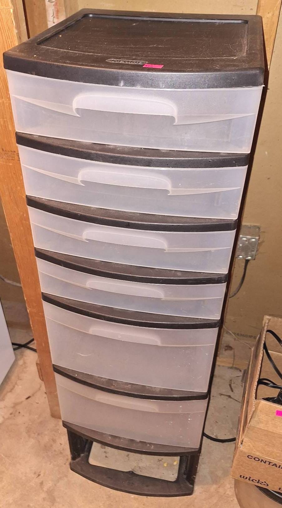 610 Plastic Storage Tower with 6 Drawers and Black Frame, 12x39x14