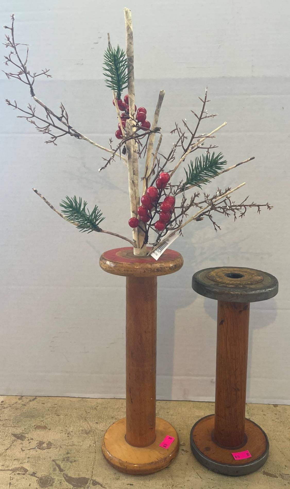 69 2 Spools With Decorative Branch Arrangement, 9-10?