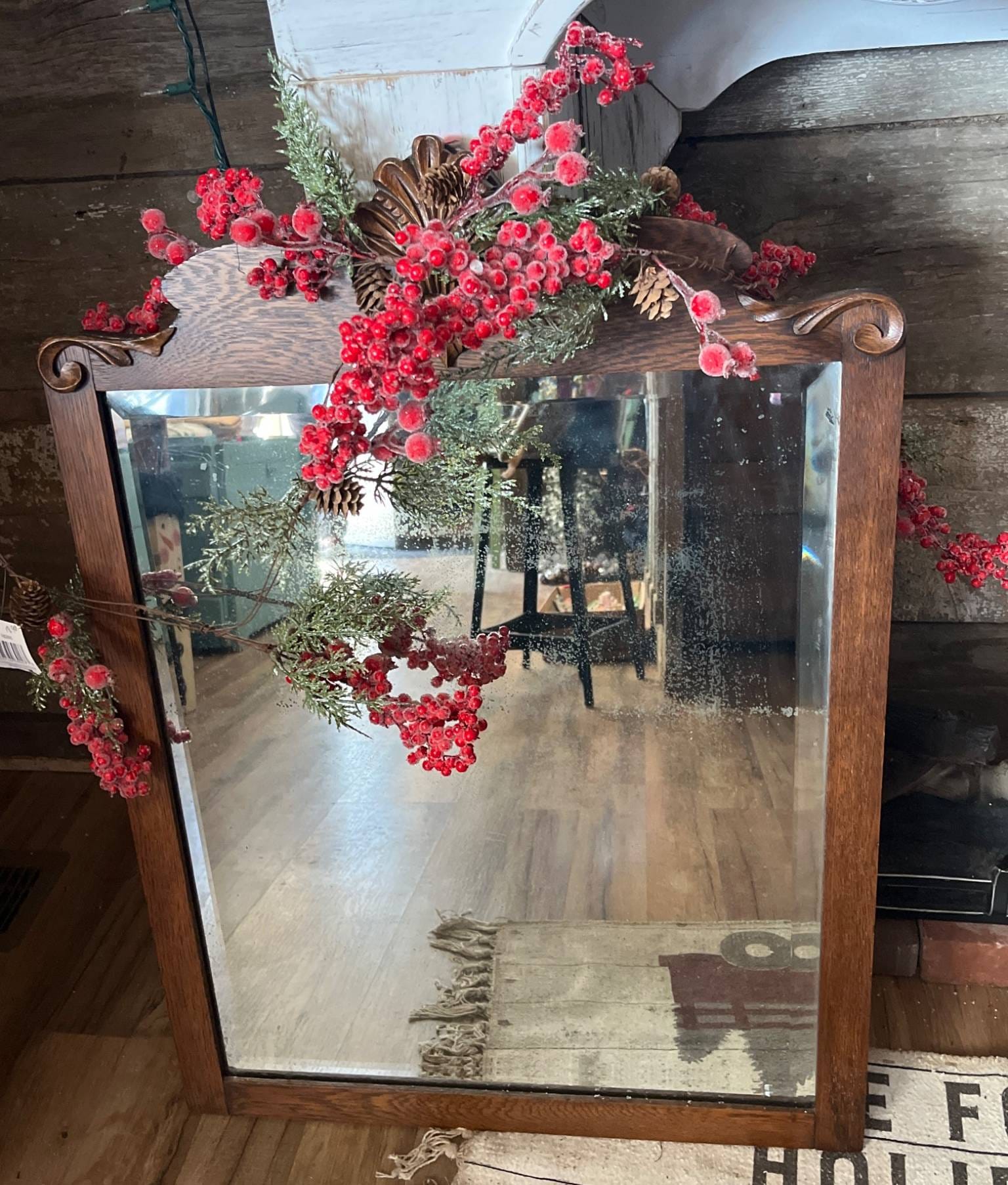 75 Tiger Sawn Antique Mirror with Carving and Shell Motif, 32×31.5?