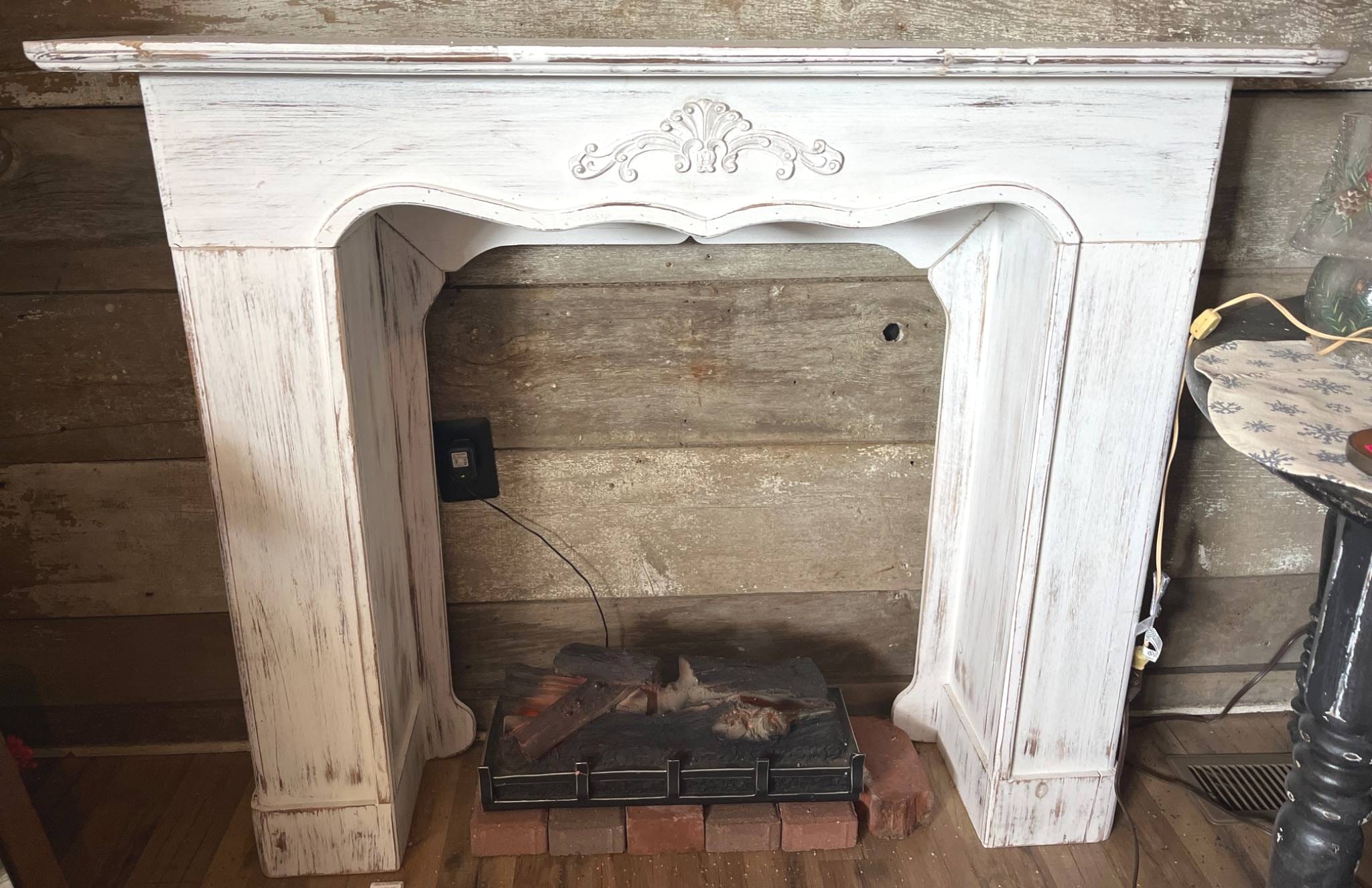 78 White Painted Cast Stone Mantel Surround with Faux Log Insert, 51x10x39.5?