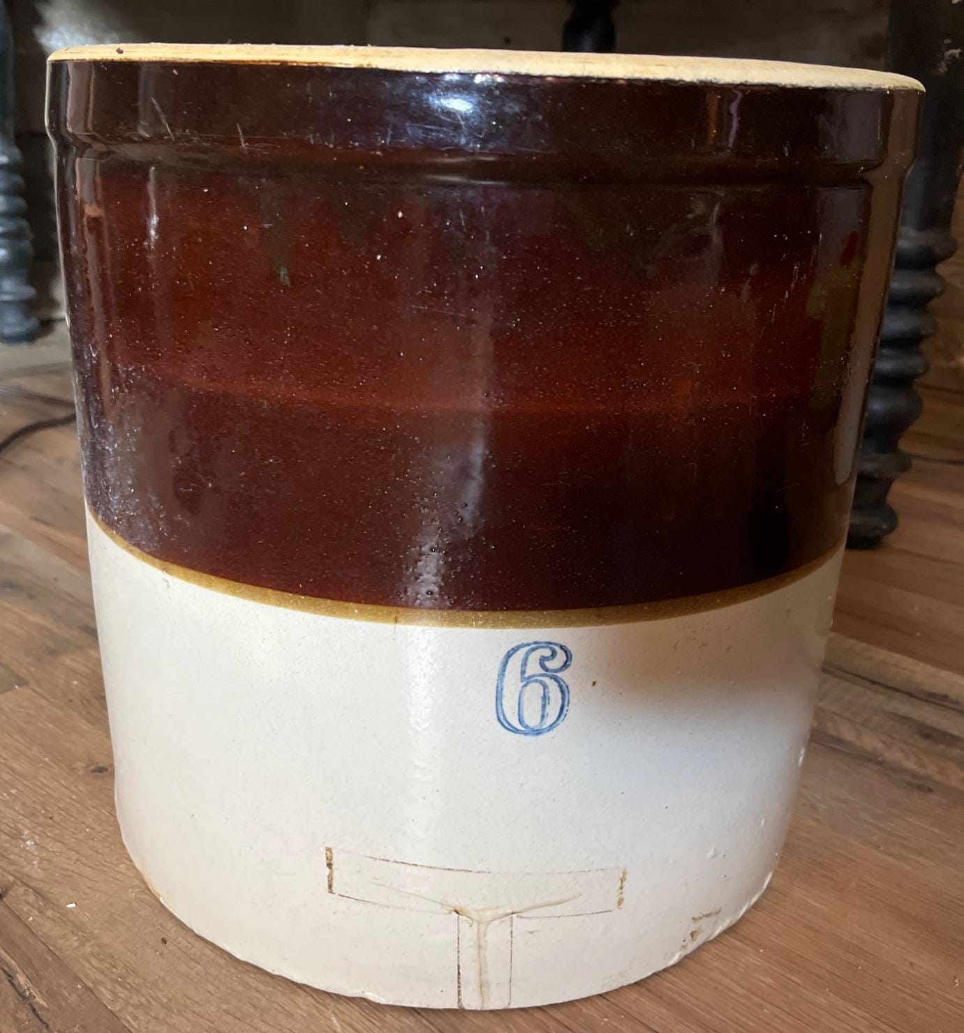 79 No. 6 Two-Tone Stoneware Crock (some cracks)