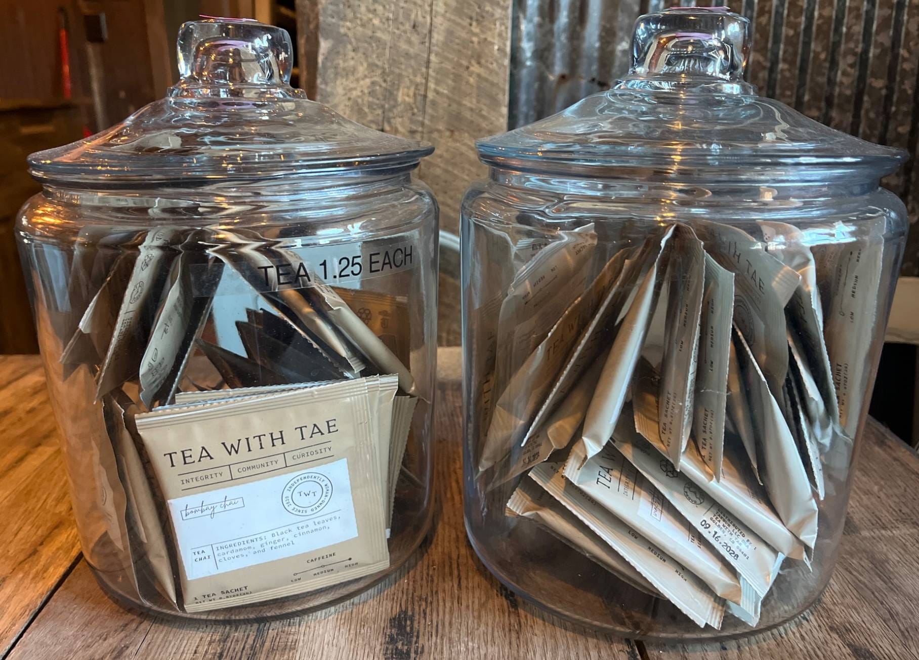 8 2 Glass Jars With Assorted ‘Tea With Tae’ Bombay Chai Sachets
