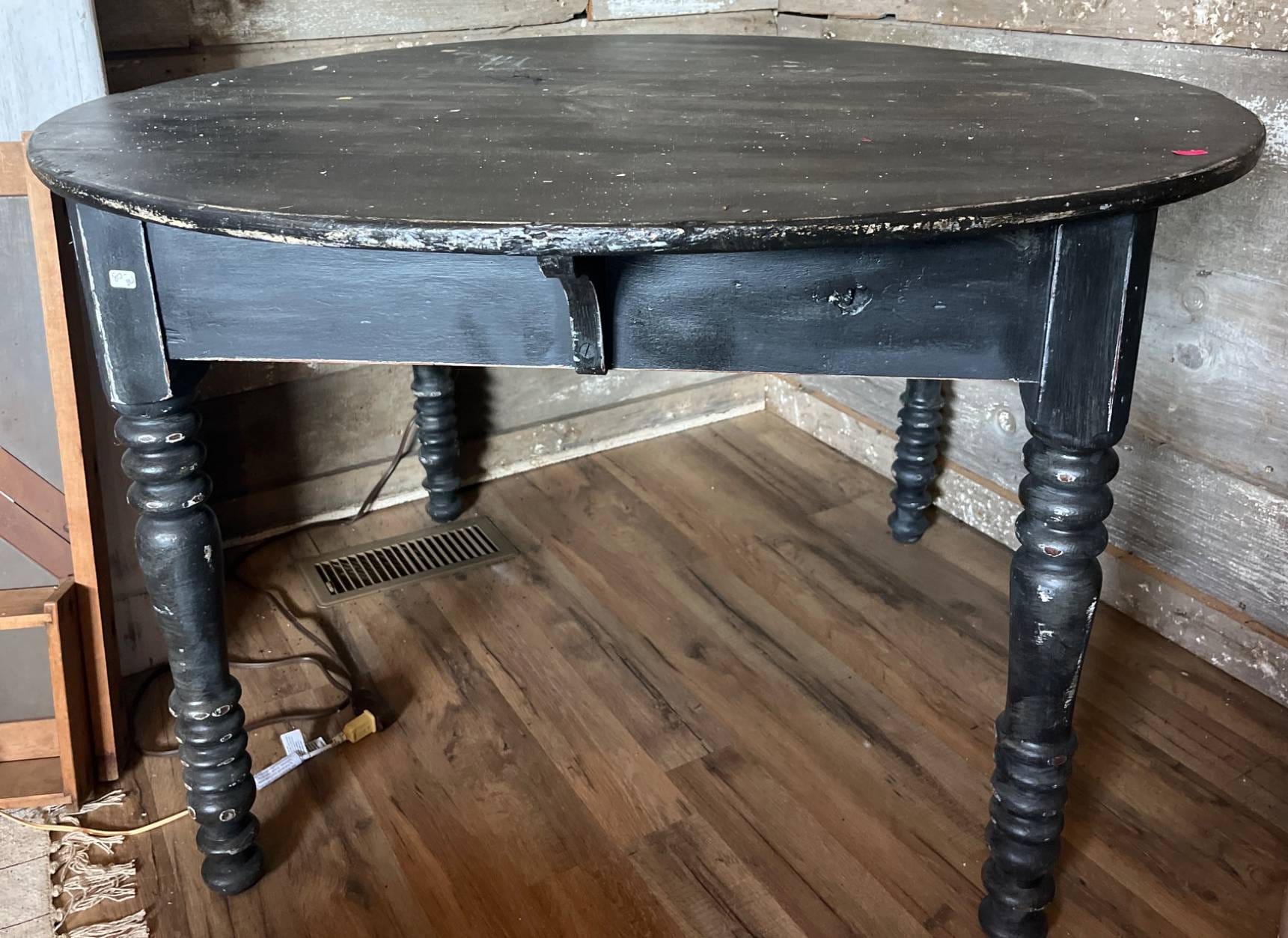 83 Black Round Table with Turned Leg Design, 43×27 1/2