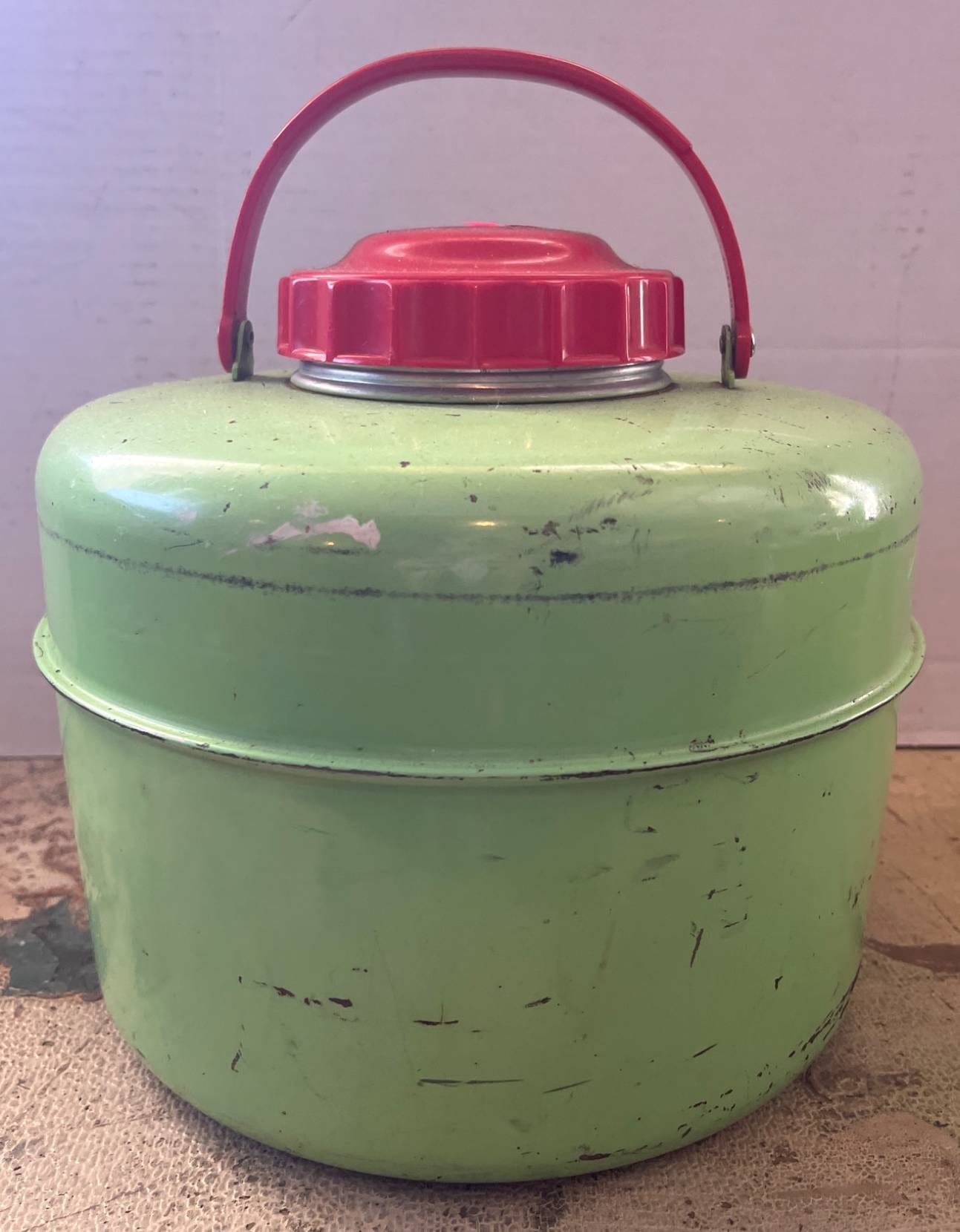 88 Green Metal Insulated Thermos With Red Handle and Screw-Top Lid, 9?