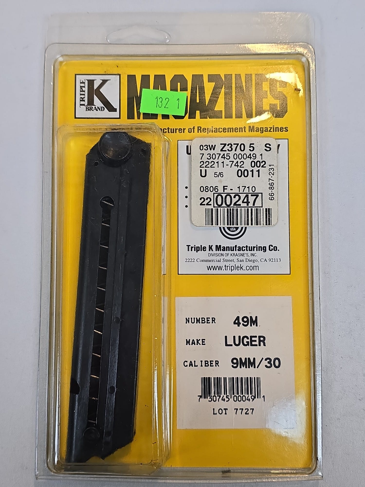 132 Triple K Magazine Number 49M Luger 9mm