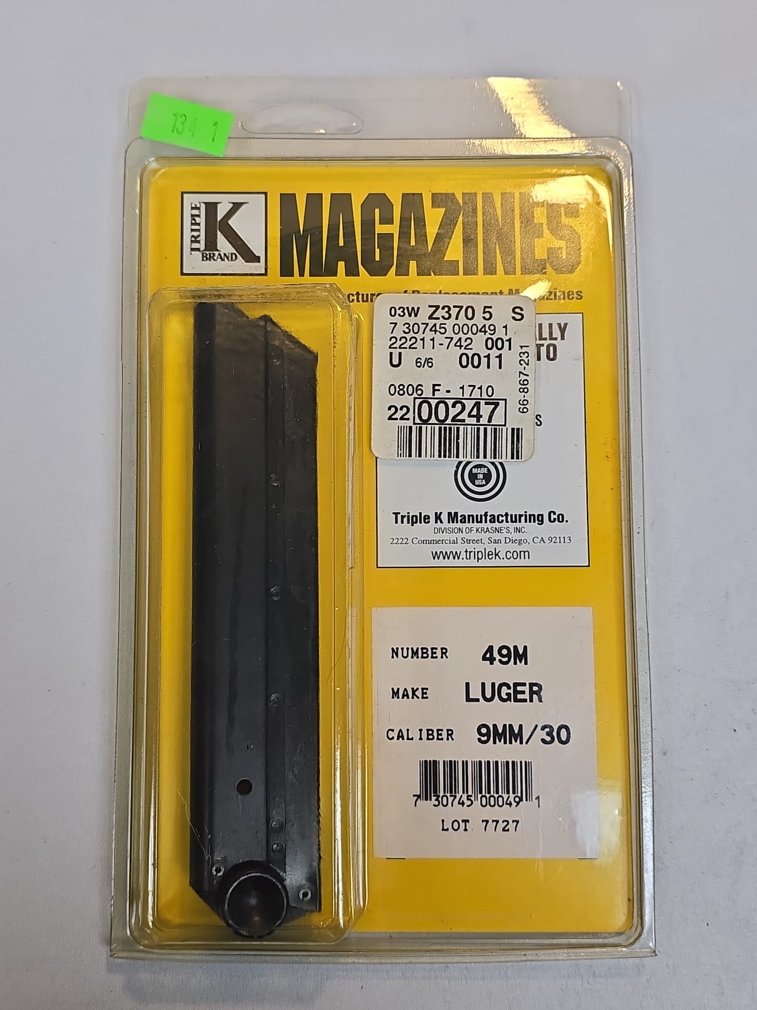 134 Triple K Magazine Number 49M Luger 9mm