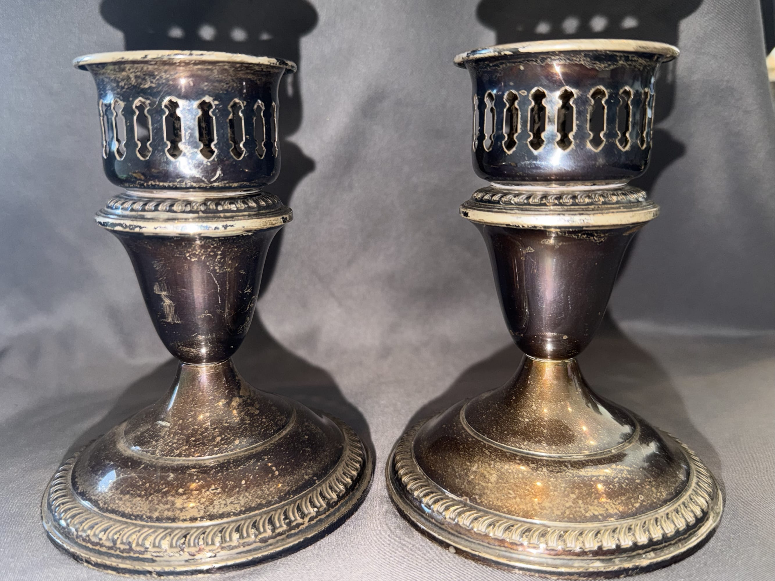 2023 Two Gorham E.P. YC3000 Silver-Plated Candle Holders, 4.5” x 4.5” x 4”